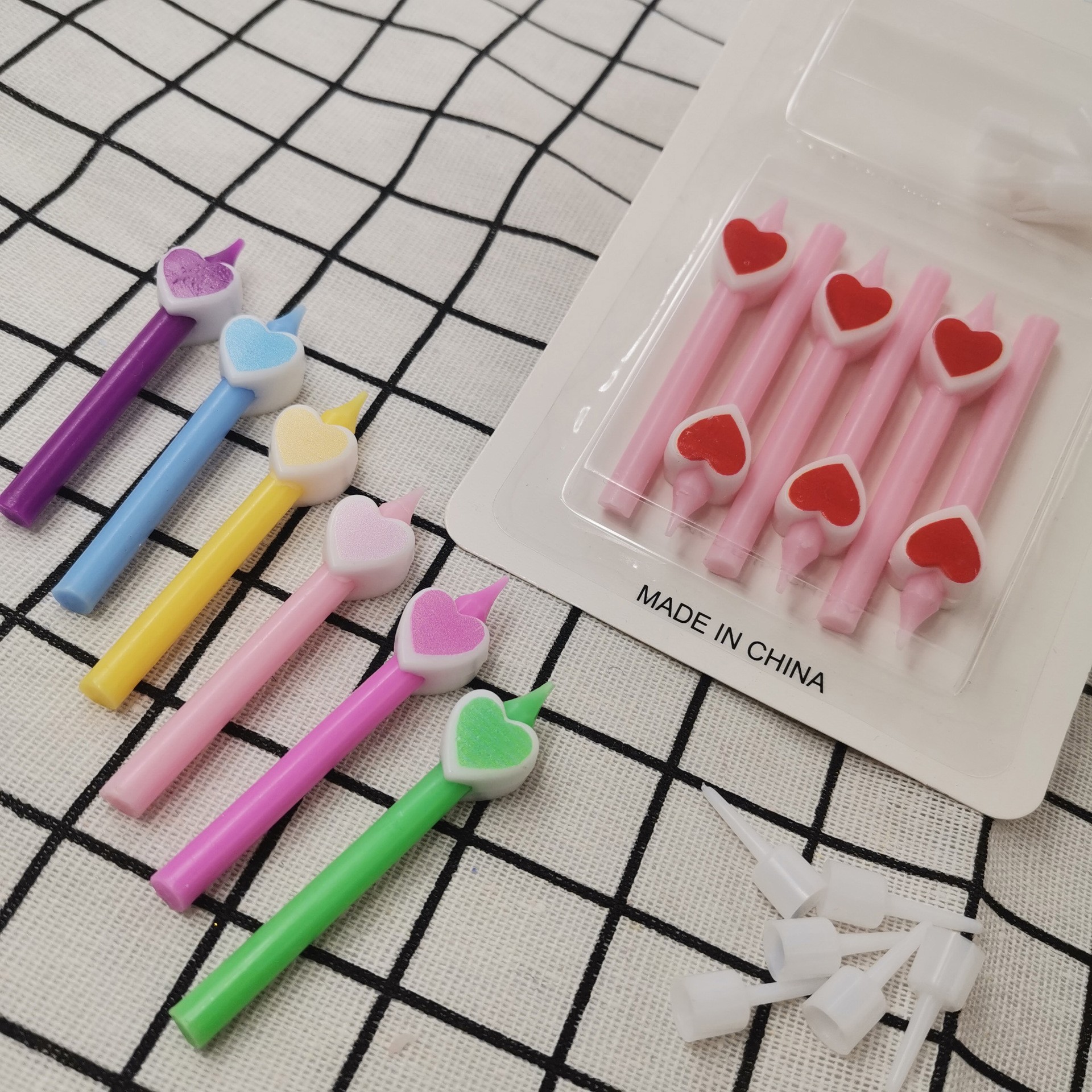 Set 6 Lumanari de Tort, Flippy, Model Creion cu Inimioare, 5.9 x 1.1 cm, din Ceara, Multicolor
