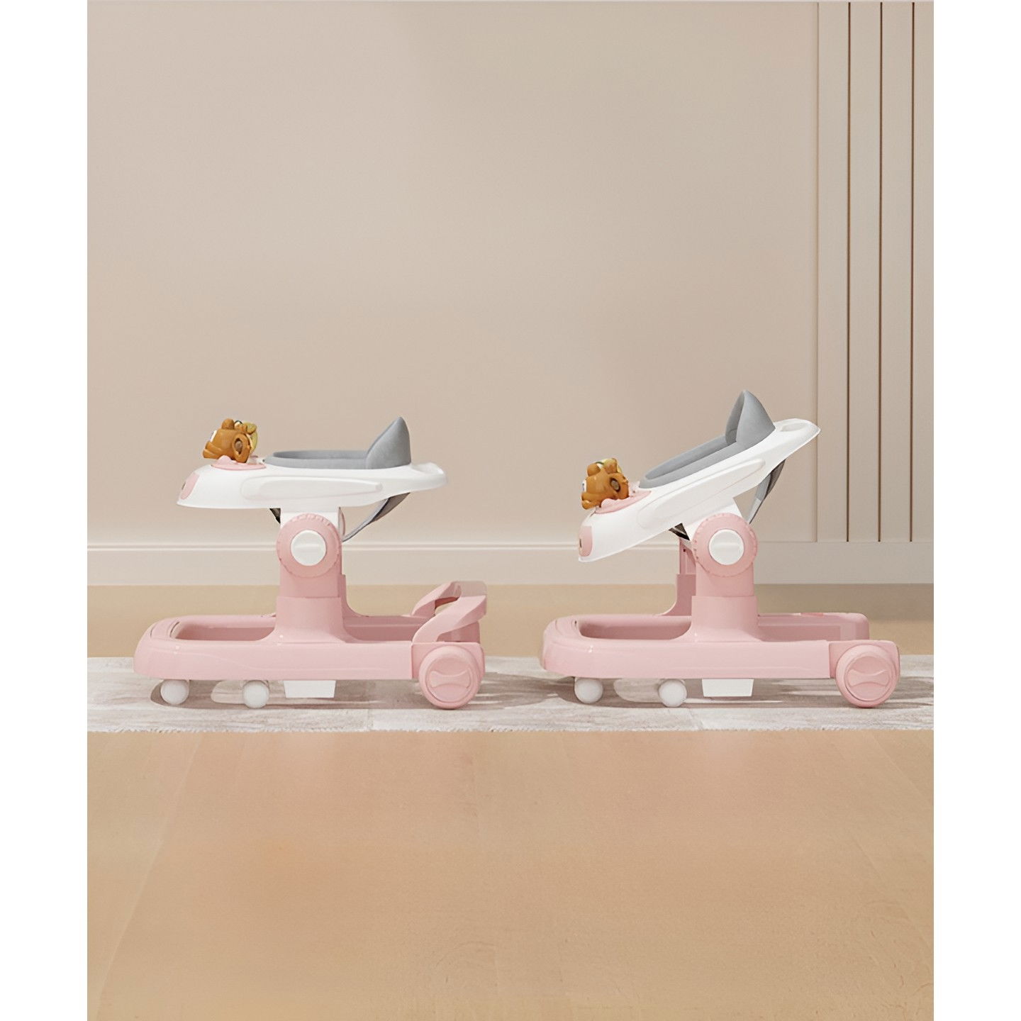 Premergator Multifunctional cu Roti Flippy, Model Iepuras, Inaltime Ajustabila, Tavita, Muzica, Lumini, 66x59x41 cm, Roz