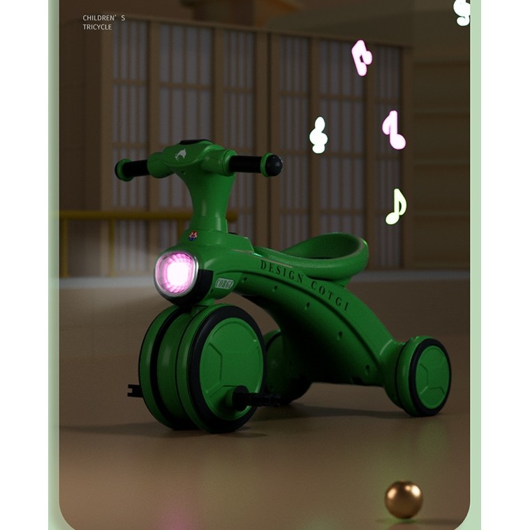Tricicleta pentru copii Flippy, pedalare, impingere, lumini si sunete, pedale antiderapante, material dur, cos depozitare, varsta peste 18 luni, 80x40x52 cm, verde