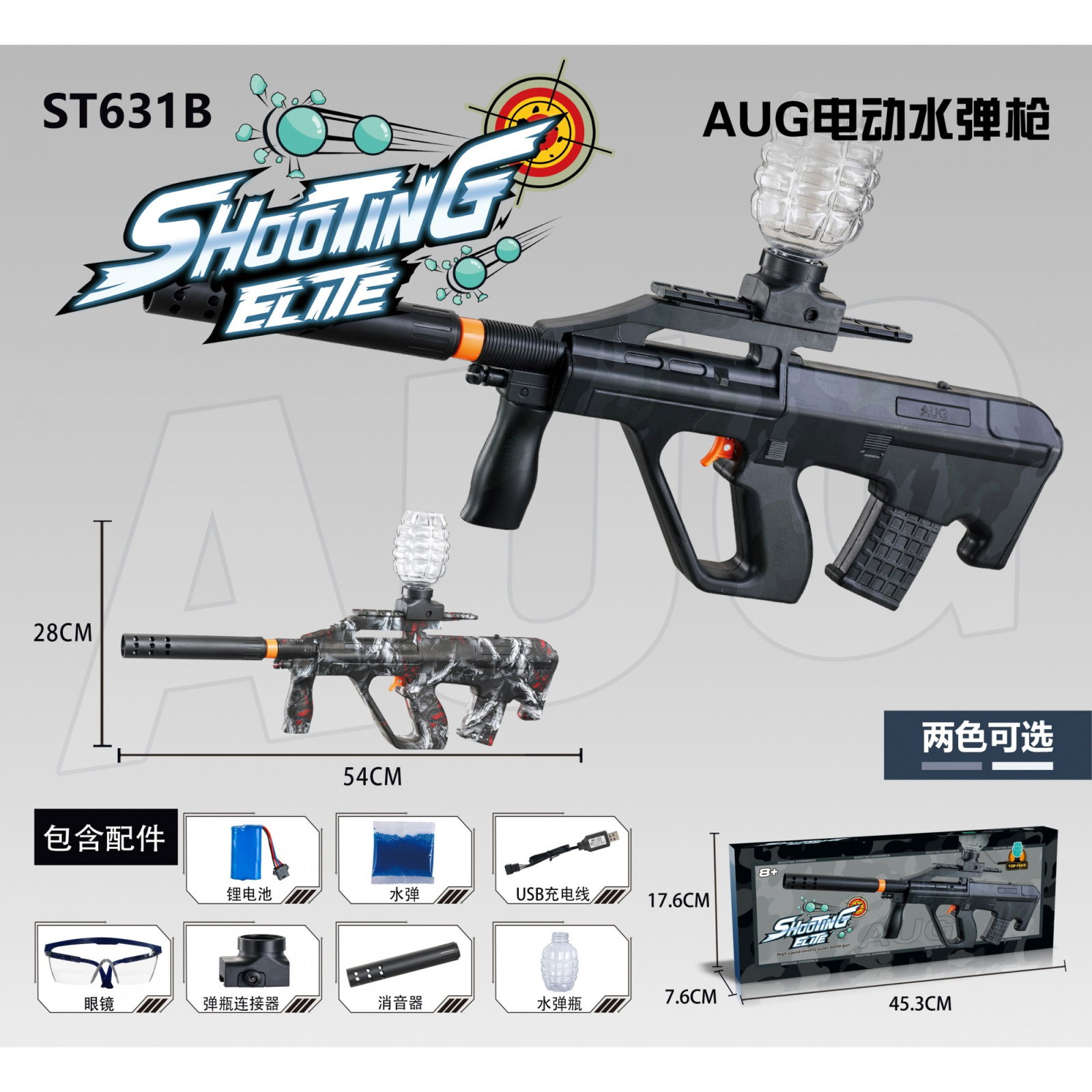 Mitraliera de jucarie electrica Flippy cu bile de hidrogen de gel, gun bluster, tragere in rafala, varsta peste 6 ani, ochelari de protectie, 5000 de bile incluse, cablu de incarcare, 28x31 cm, AUG, n
