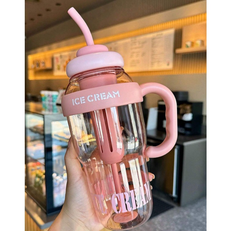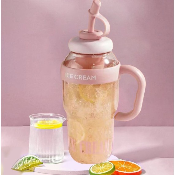 Descriere Produs: Sticlă de Apă Flippy Transparentă, 1400 ml, cu Pai și Capac Roz deschis