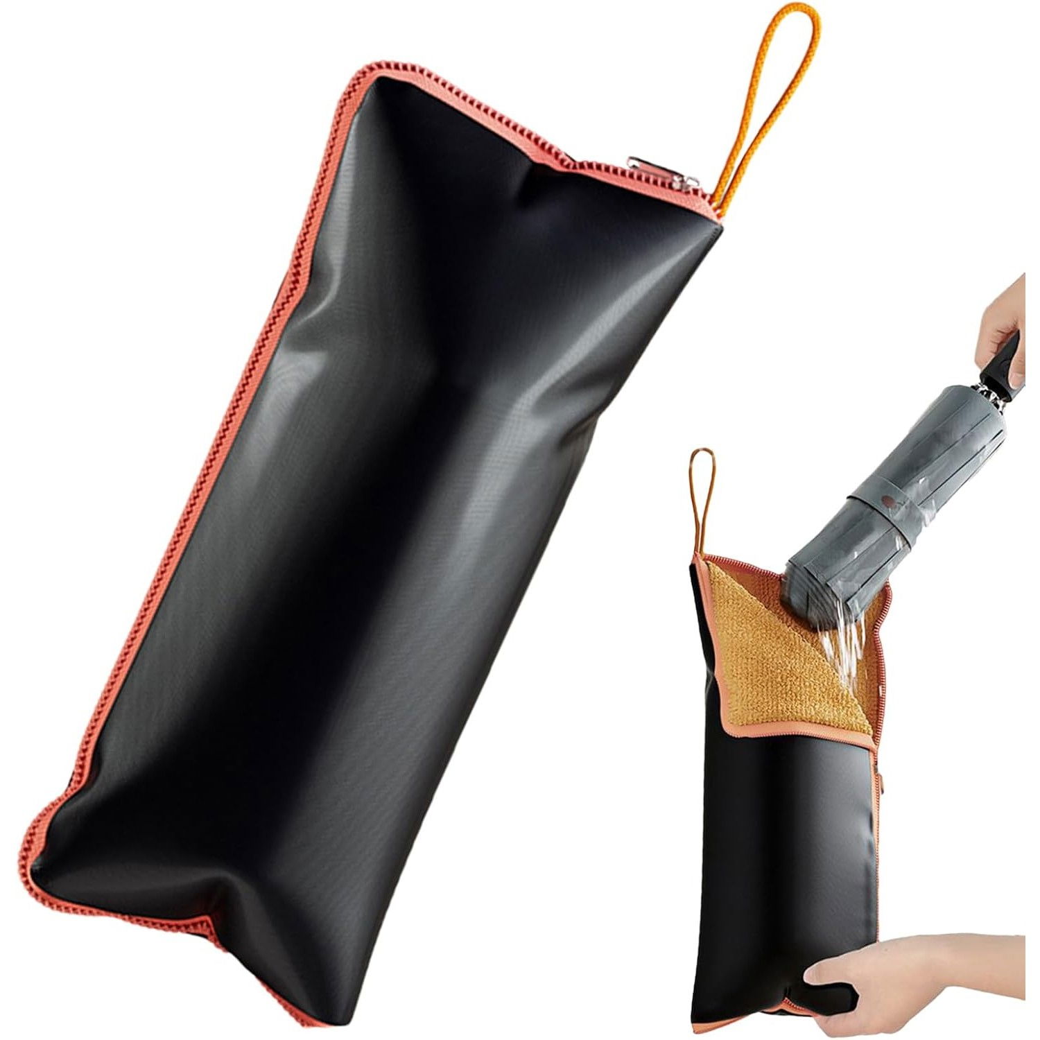 Husa Depozitare Umbrela, Flippy, Impermeabila, Interior Microfibra, cu Fermoar, 28 x 12 cm, Negru/Portocaliu