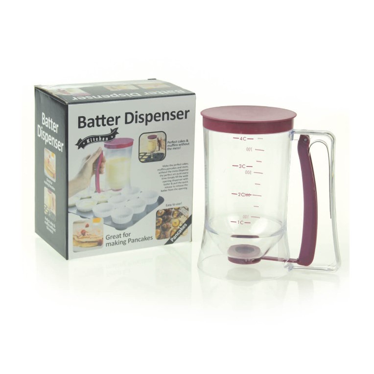 Bucurati-va de clatite, briose si torturi fara mizerie. Atunci cand este utilizat ca distribuitor de aluat pentru pancake, permite o amplasare precisa direct pe tava, tigaie sau oriunde este nevoie de aluat.
