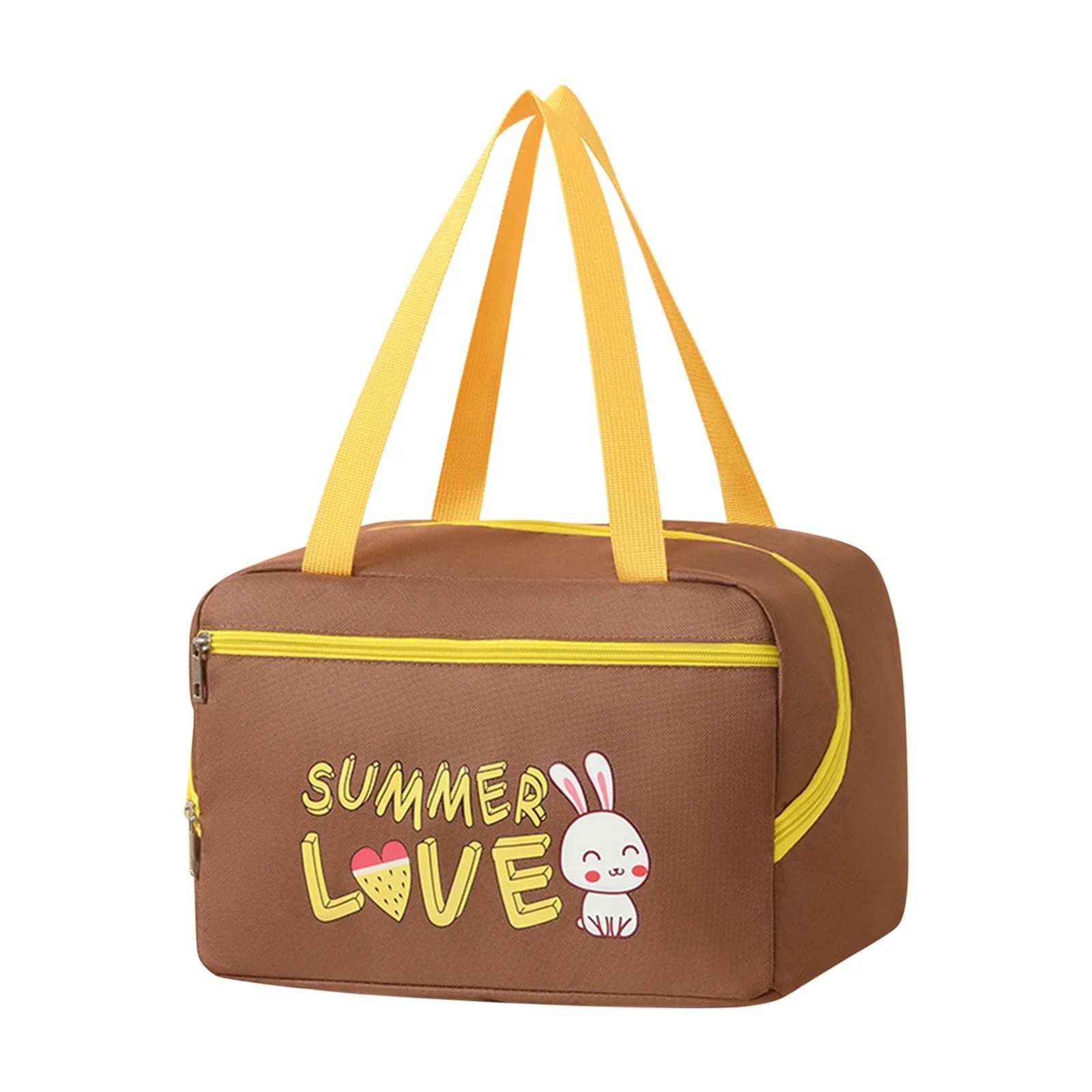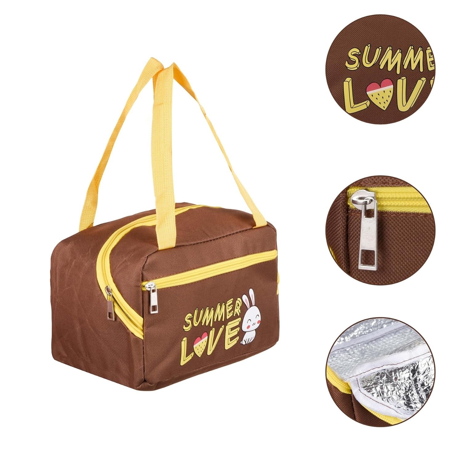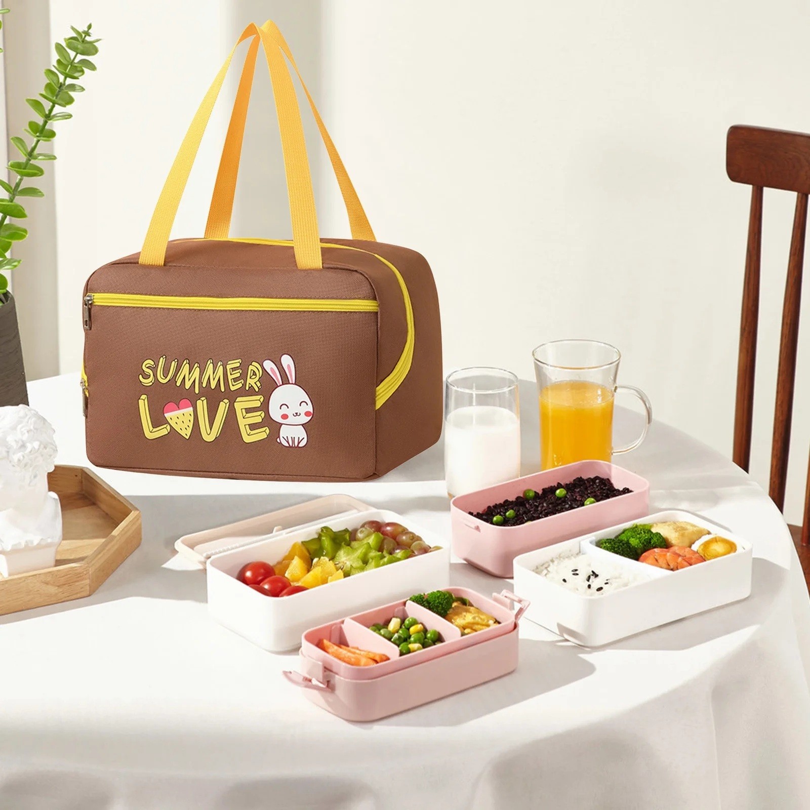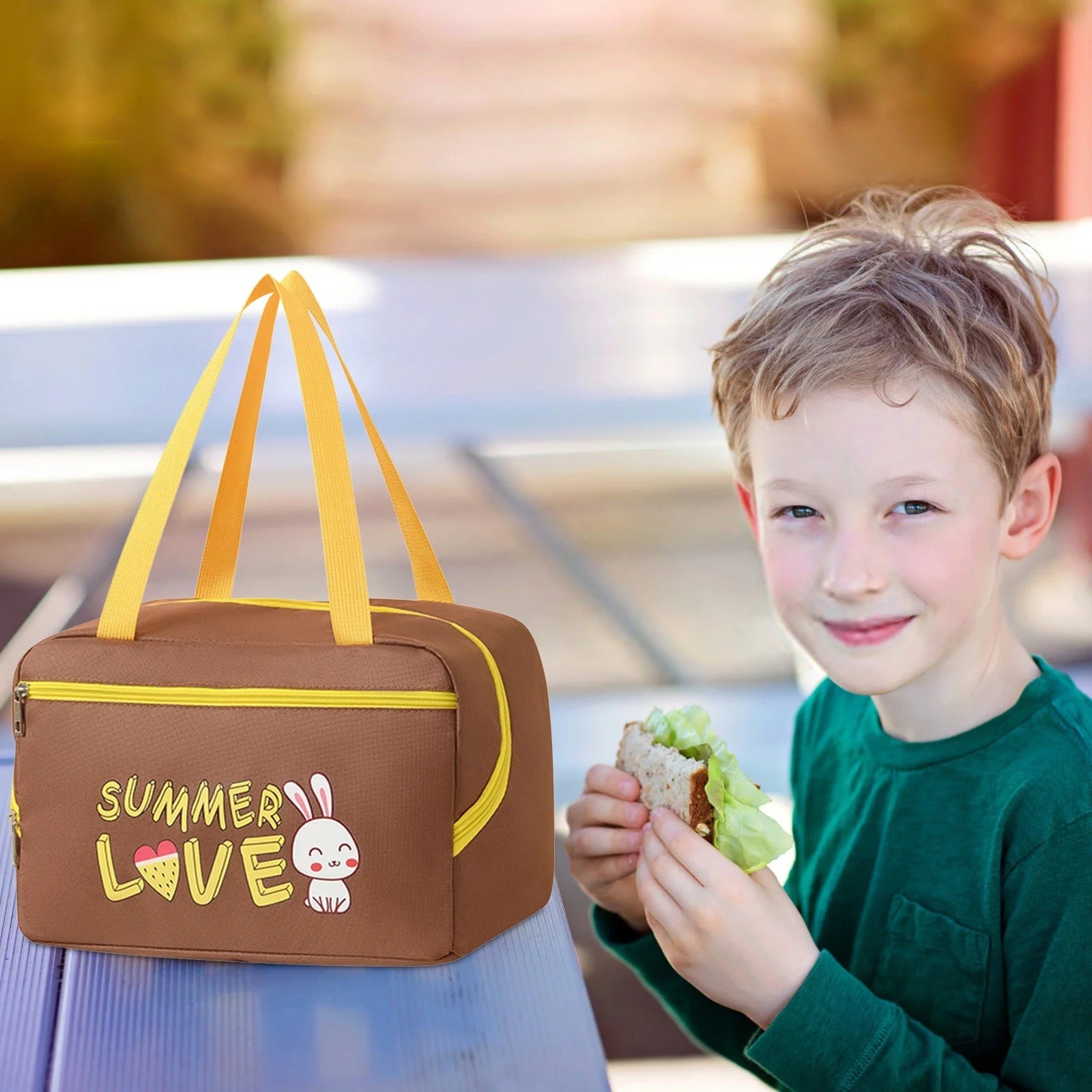 Geantă Termo-Izolantă Flippy, cu Compartimente pentru Telefon și Tacâmuri, 30 x 21 x 20 cm, Design Iepuraș, Maro
