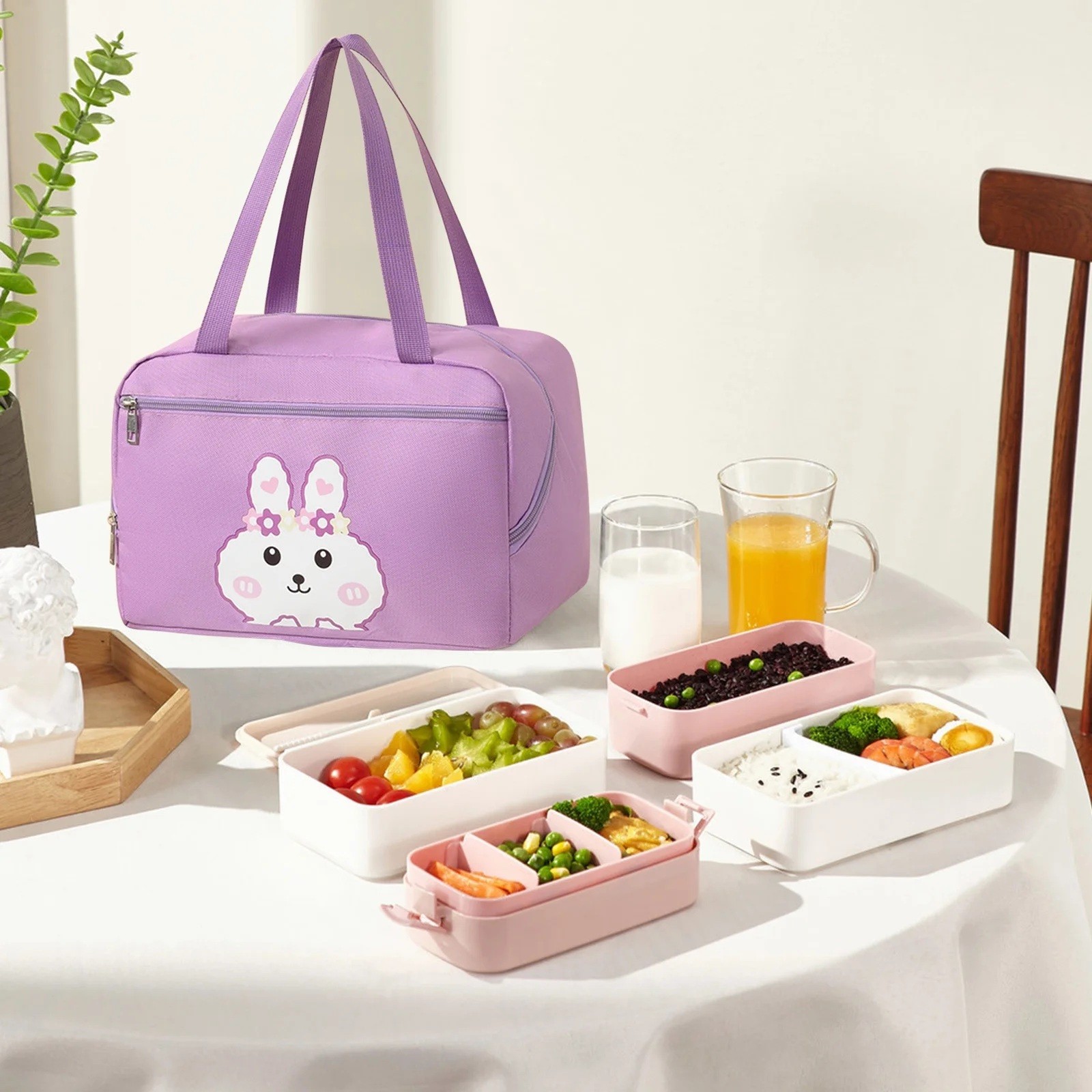 Geantă Termo-Izolantă Flippy, cu Compartimente pentru Telefon și Tacâmuri, 30 x 21 x 20 cm, Design Iepuraș, Mov
