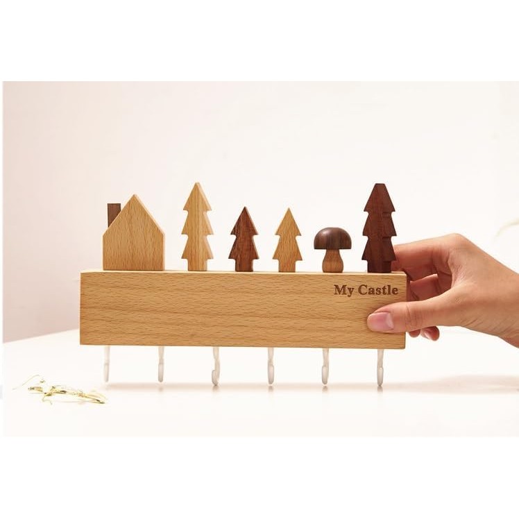 Adaugă un element practic și estetic locuinței tale cu suportul pentru chei Flippy. Fabricat din lemn natural, acest cuier compact oferă 6 cârlige robuste și o instalare ușoară, fără a necesita perforarea pereților.