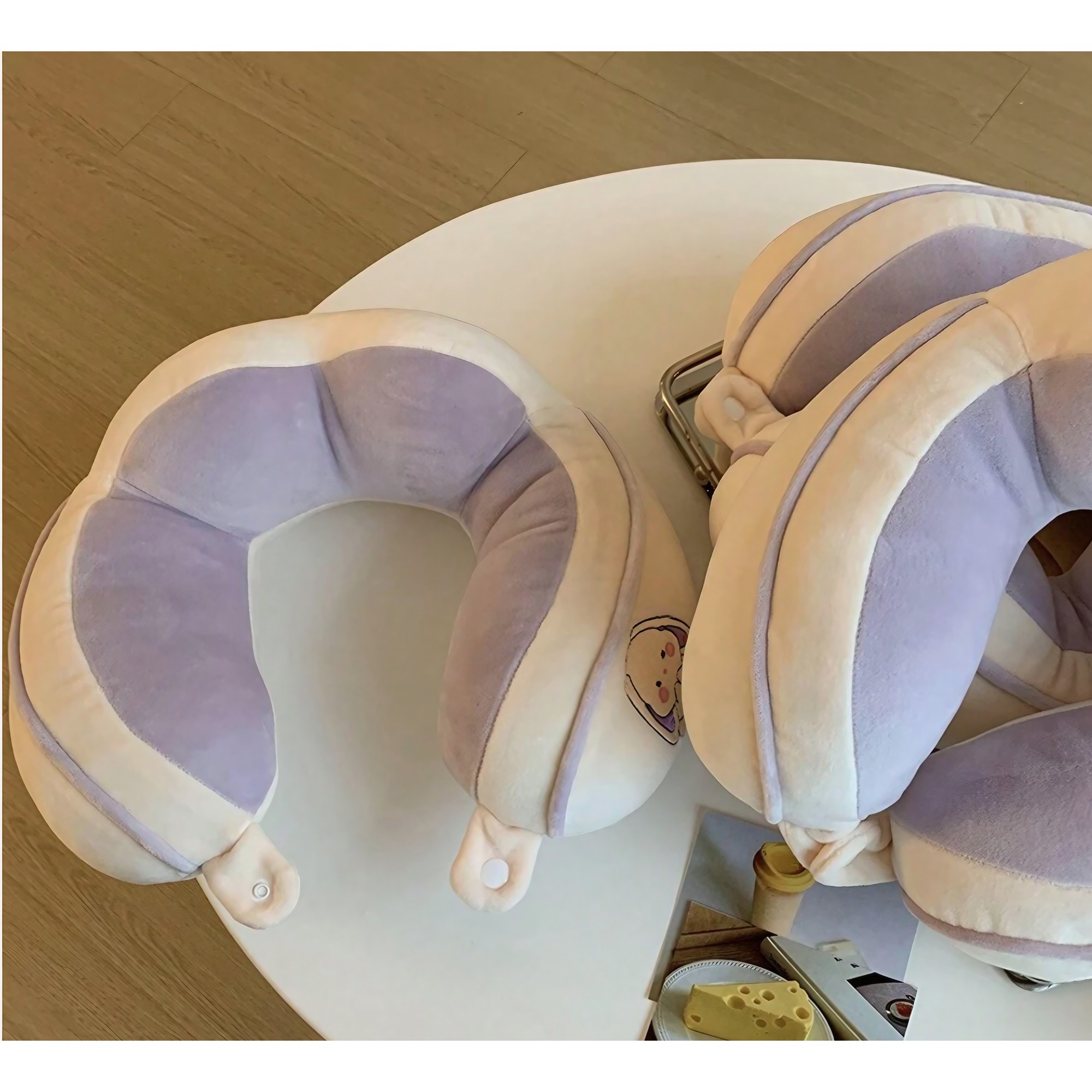 Perna de Calatorie, Flippy, Pentru Gat si Cap, Umplutura din Bumbac, cu Model Brodat Iepure, Lila, reprezintă soluția perfectă pentru confortul în călătorii și momentele de relaxare.