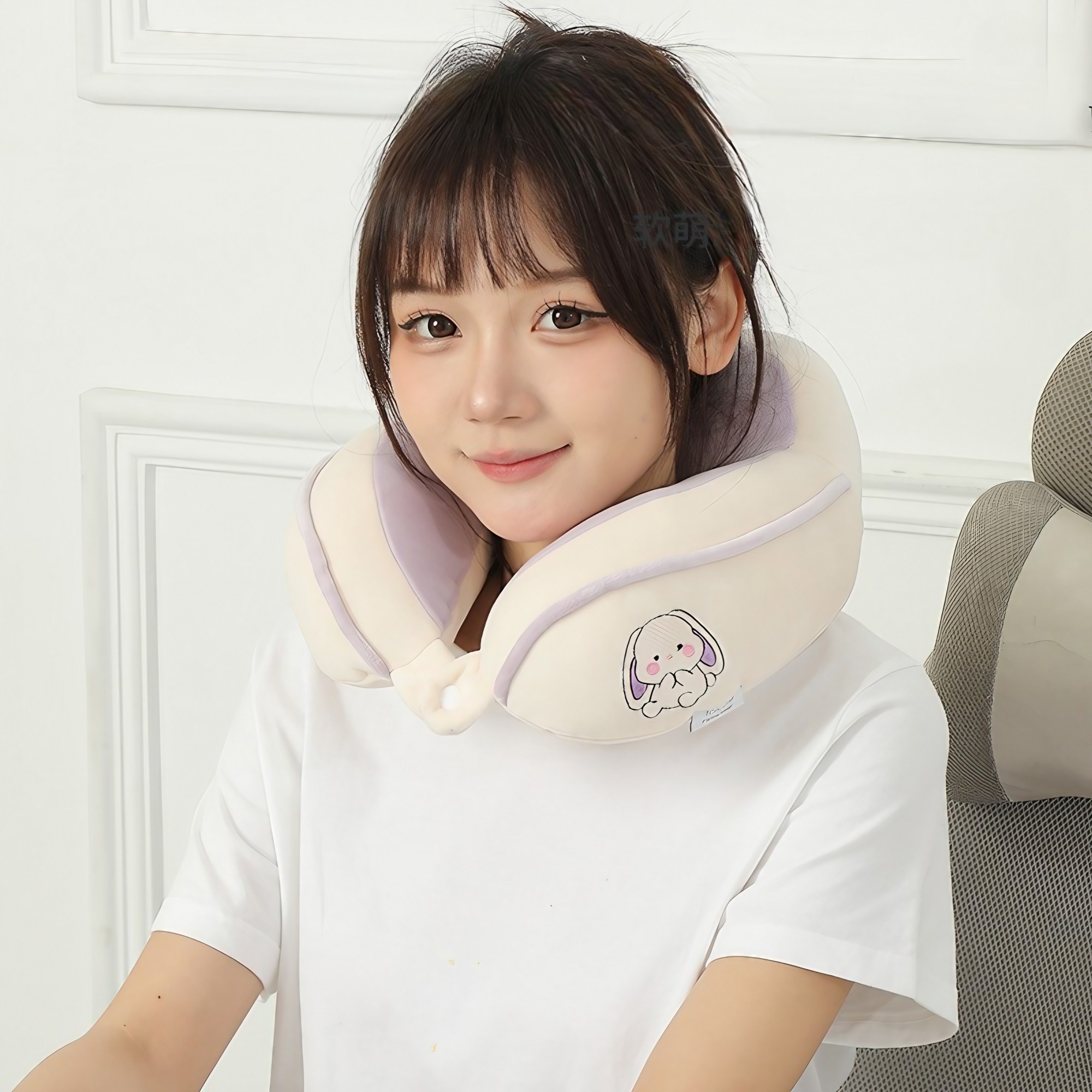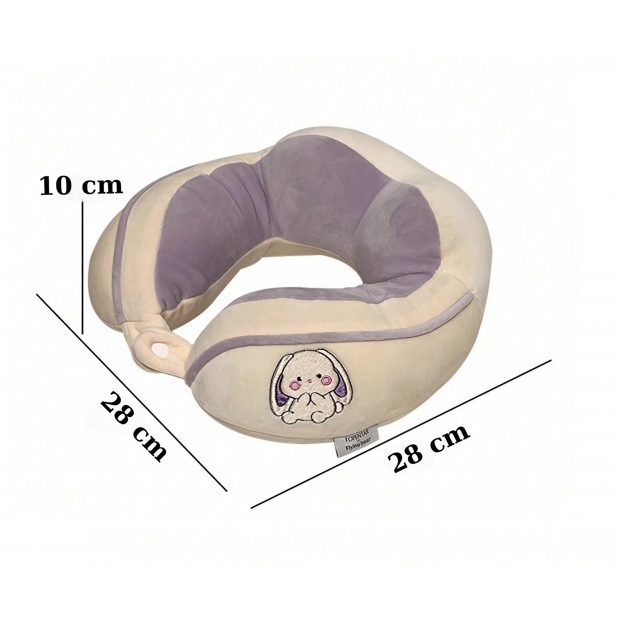 Perna de Calatorie, Flippy, Pentru Gat si Cap, Umplutura din Bumbac, 28x28x10 cm, cu Model Brodat Iepure, Lila