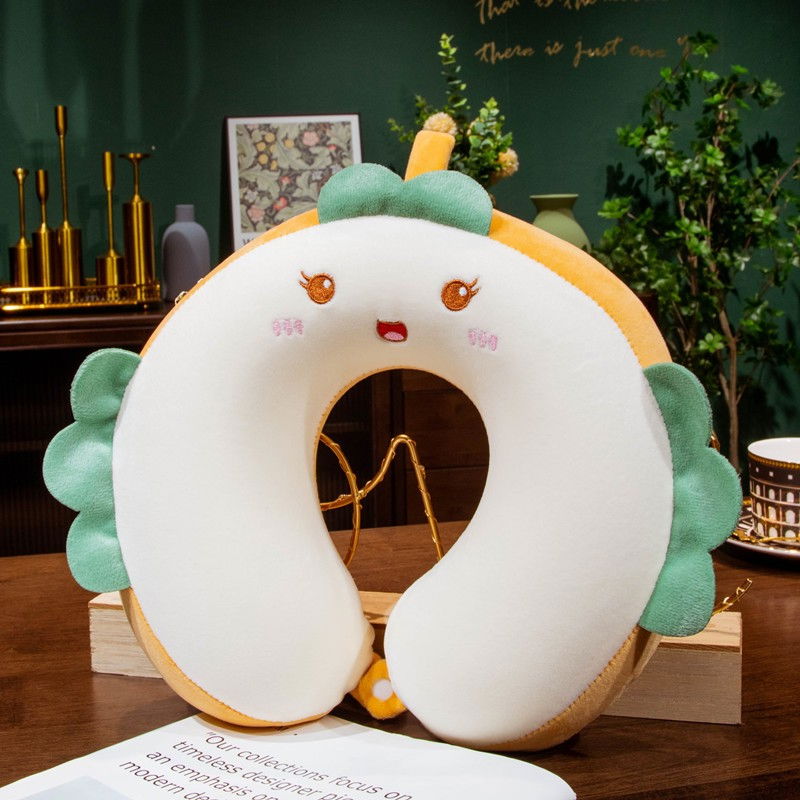 Perna de Calatorie in Forma de U, Flippy, Pentru Gat si Cap, Umplutura din Spuma cu Memorie, 30x30 cm, Model Burger, Accesoriu de Voiaj, Birou, Masina, Sistem Prindere Capse, Alb