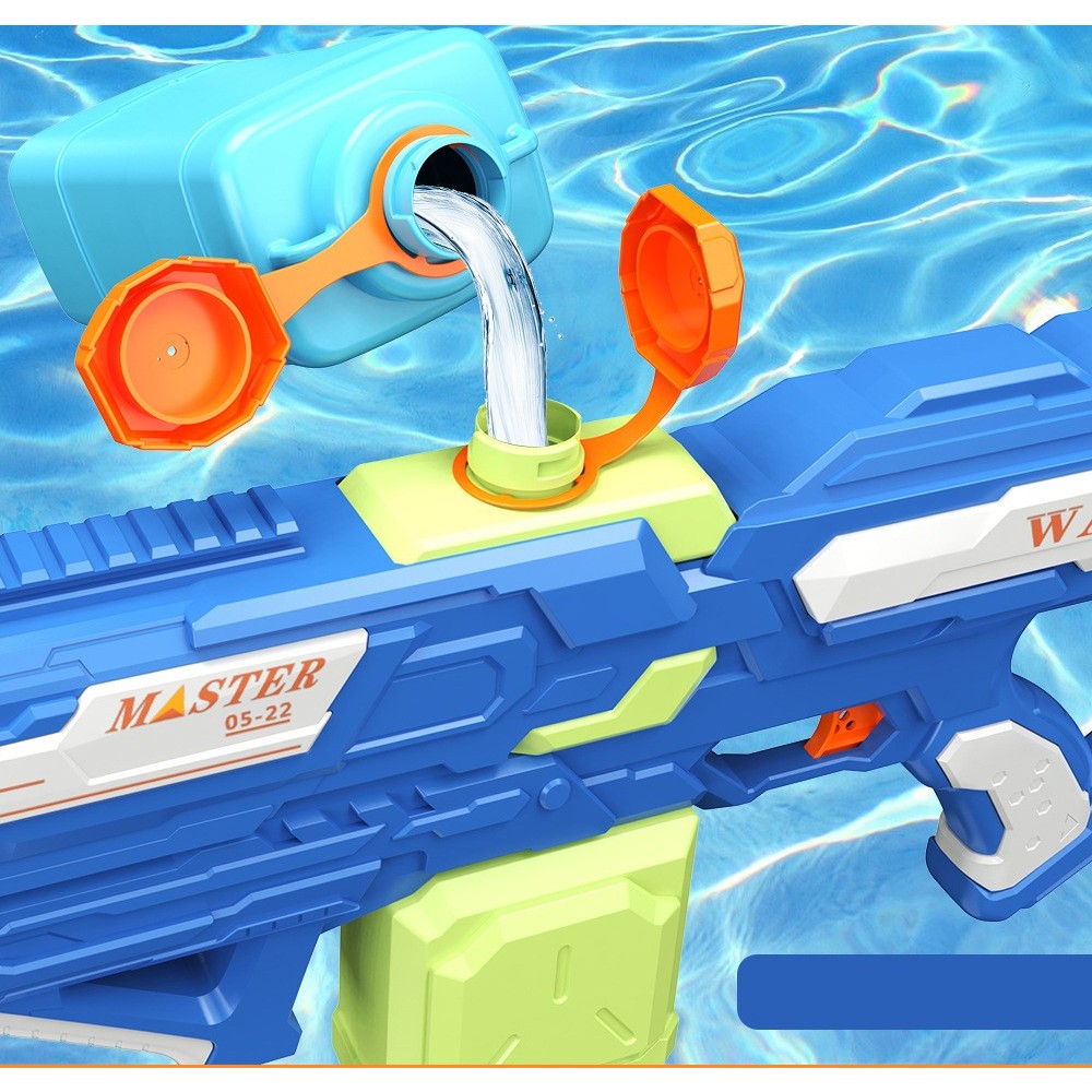 Pistolul puternic de apă adoptă designul pompei de înaltă presiune.Ușor de umplut și operat! Vă rugăm să evitați să trageți direct în față și în ochi. Designul rezistent la scurgeri permite copiilor să se joace fără să-și facă griji că apa se poate scurge.