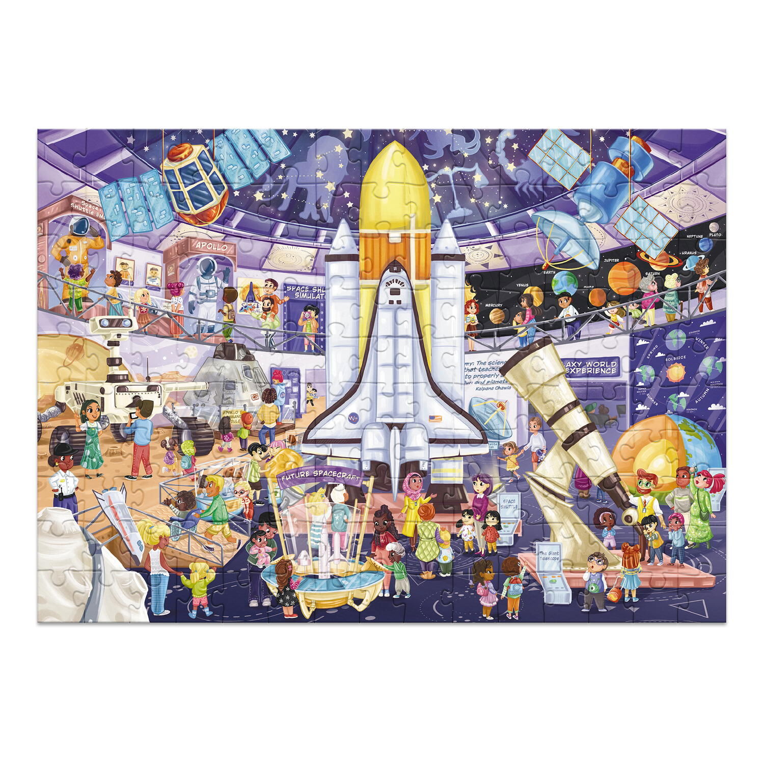 Setul contine 150 de piese, iar dupa asamblare vei obtine o ilustratie colorata ce infatiseaza un planetariu cu telescoape, cer instelat si exponate stiintifice interesante