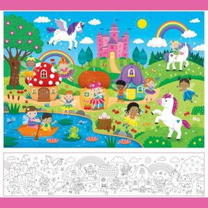 Odata asamblat, puzzle-ul formeaza o imagine spectaculoasa cu un peisaj magic plin de zane, unicorni, curcubeie, castele roz si casute fermecate, invitand copiii intr-o lume plina de fantezie si bucurie