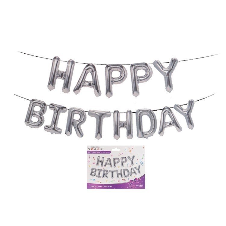 Set 13 Baloane Folie, Flippy, Tip Ghirlanda, Model Happy Birthday, 40 cm, Argintiu