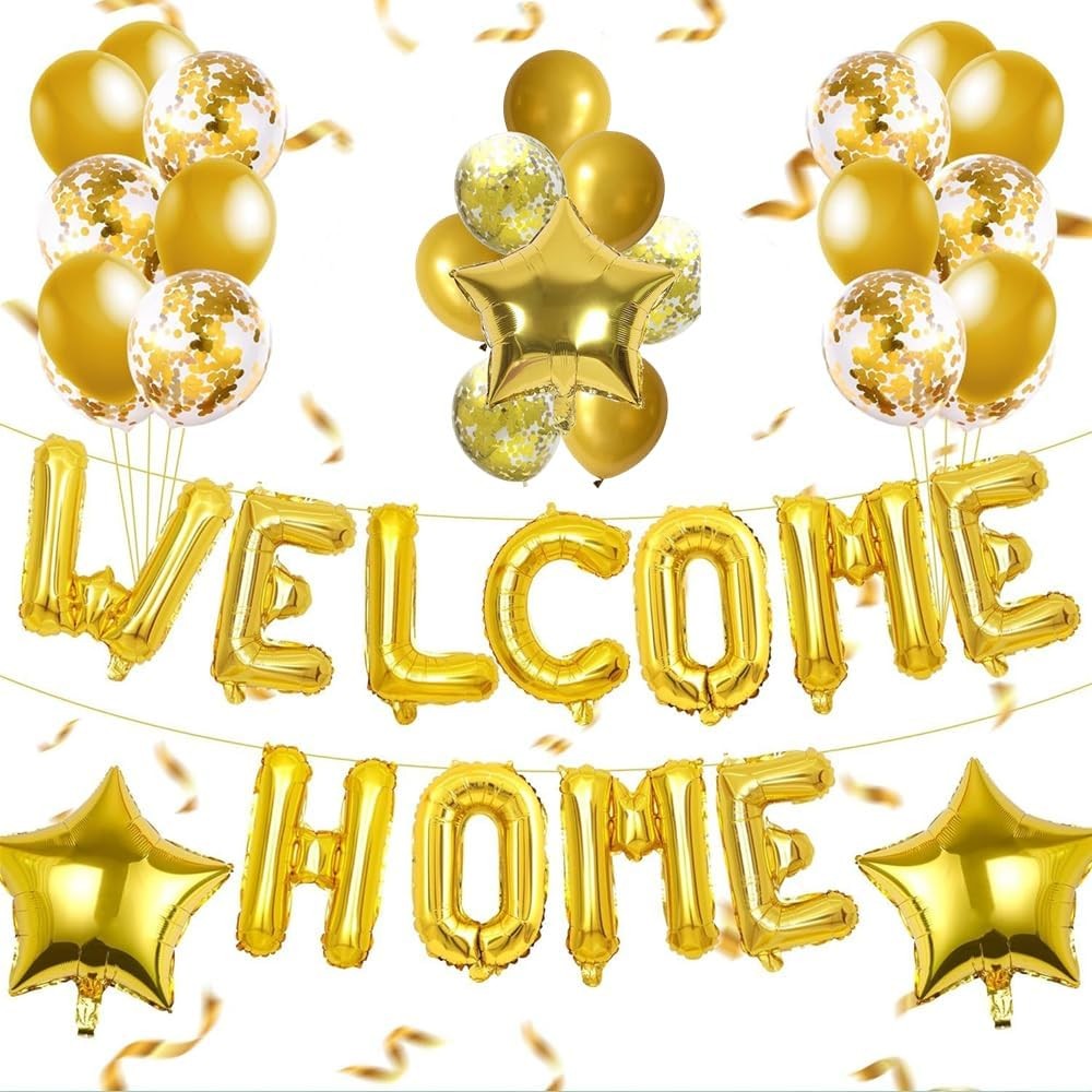 Set Baloane din Folie Metalizata, Flippy, Model WELCOME!, Litere de 40 cm, Baloane Party, Ambalaj Individual, Pai Inclus, Umflare cu Aer sau Heliu, Auriu