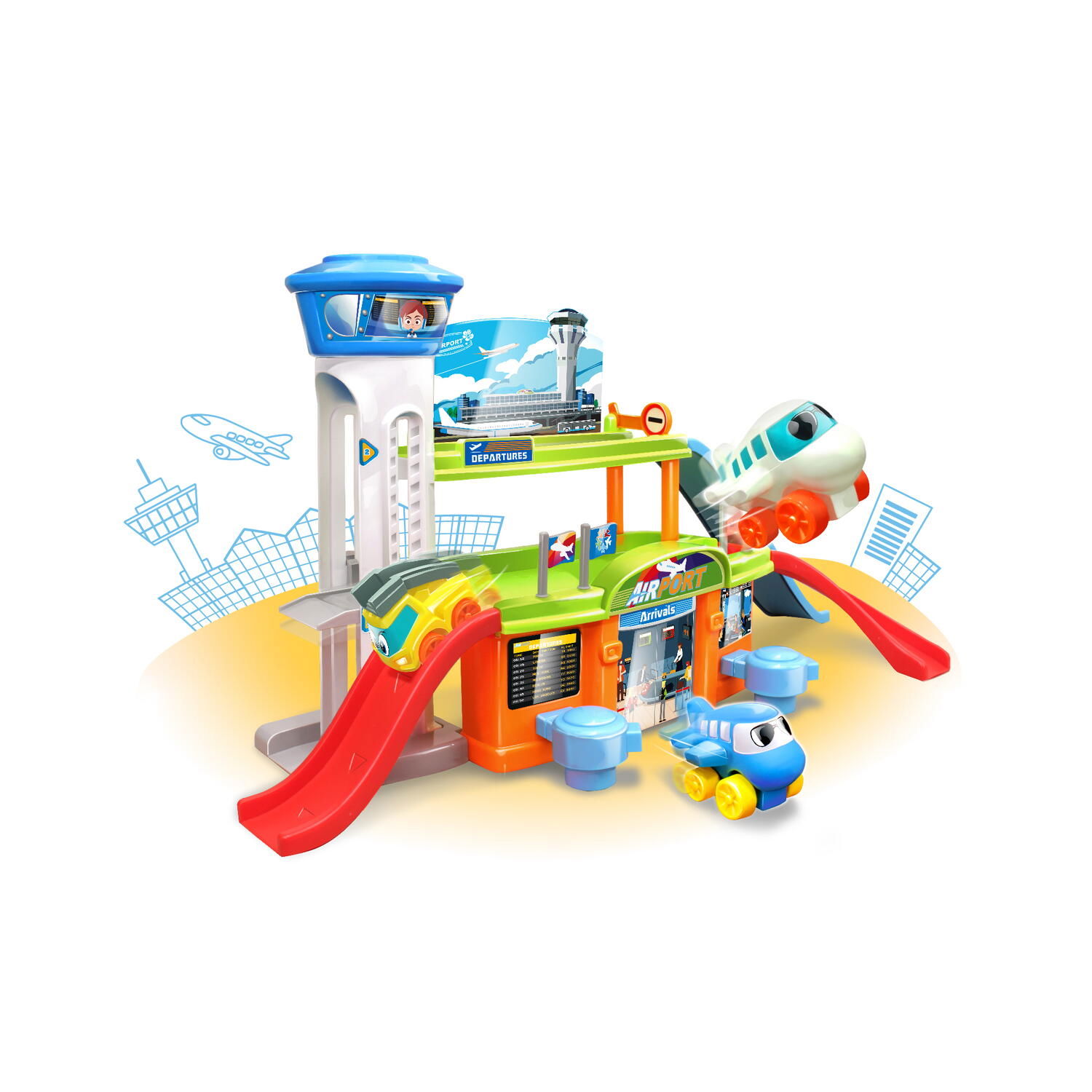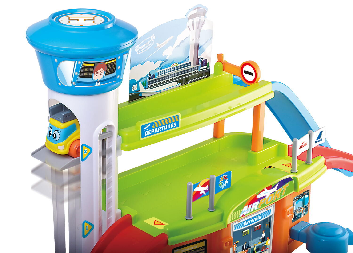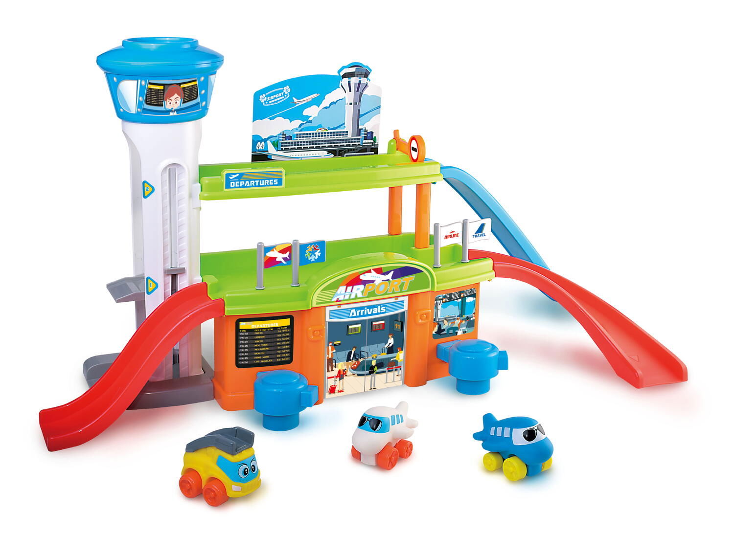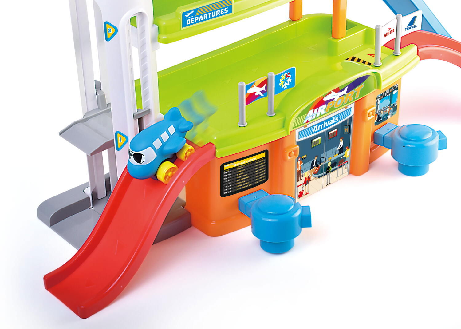 Pregateste-te de decolare! „Primul Meu Aeroport” este un set de joaca interactiv si colorat, perfect pentru micii pasionati de avioane si aventuri aeriene