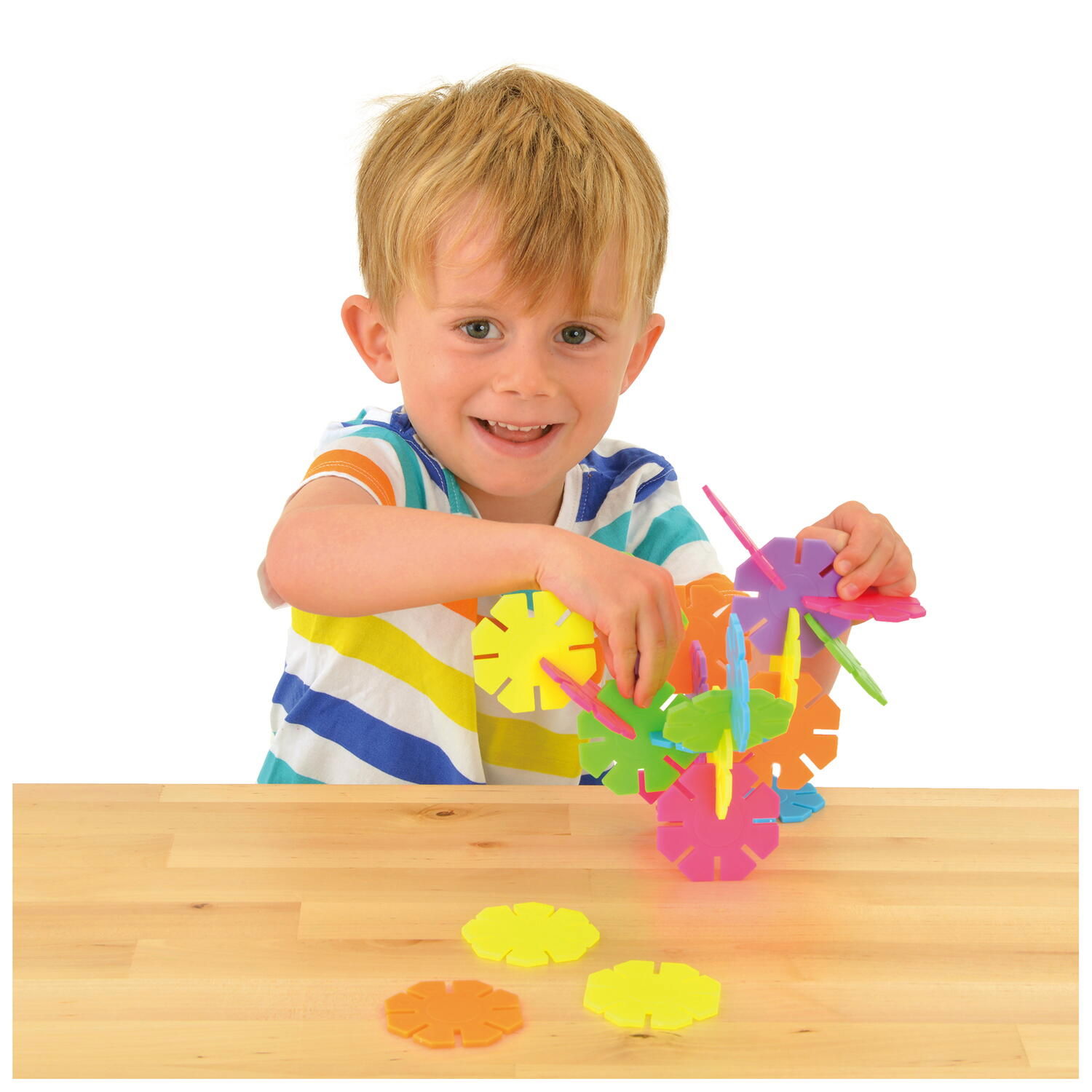 Hai sa construim!Incurajeaza-ti copilul sa isi foloseasca imaginatia, construind cu aceste discuri amuzante. Discurile sunt colorate si pot fi unite intre ele de manutele mici ale copiilor, cu scopul de a forma modele cat mai ciudate si distractive.