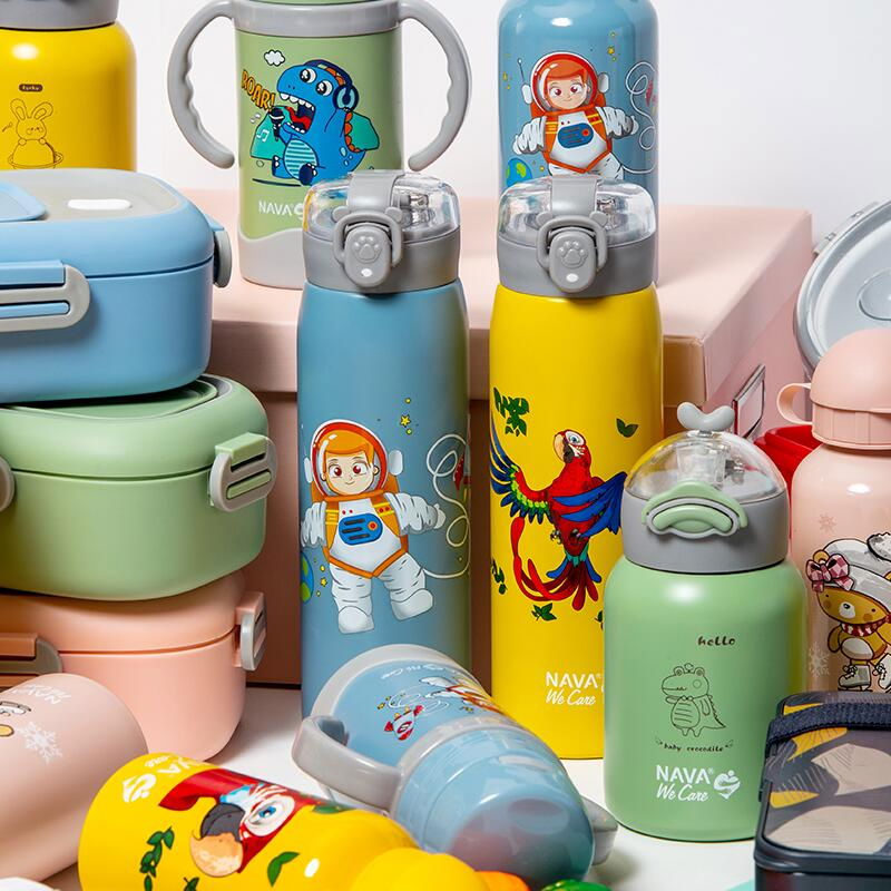 Sticla pentru lichide fierbinti din oțel inoxidabil Nava 500 ml „We Care” va încânta atât tinerii cât și bătrânii. Este realizat din oțel inoxidabil 18/8 (ss304) și cu pereți dubli, fără BPA, PVC și ftalați, pentru durabilitate și depozitare absolut sigură și igienă a băuturilor. În această sticlă termos cu tehnologie de izolare în vid, vei păstra băuturile fierbinți sau reci la temperatura dorită timp de 8 ore*. Cu paie integrată pentru ușurință în utilizare. Capacul se deschide automat (OneTouch) prin apasarea butonului, special conceput pentru mainile mici. Cu două mânere ergonomice pentru o prindere ușoară, este ideală pentru micii noștri prieteni, pentru școală, plimbări și, de asemenea, pentru interiorul casei, deoarece nu se rupe și este complet impermeabil. În ceea ce privește curățarea, spălați manual cu un burete moale după fiecare utilizare. Nu poate fi spălat vase. *Timpul de reținere a temperaturii poate varia în funcție de cantitatea de conținut, de temperatura băuturii sau de temperatura mediului extern.
