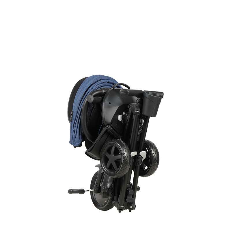 Tricicleta de lux are un cadru din aluminiu, ușor și complet pliabil, astfel încât tricicleta poate merge oriunde.