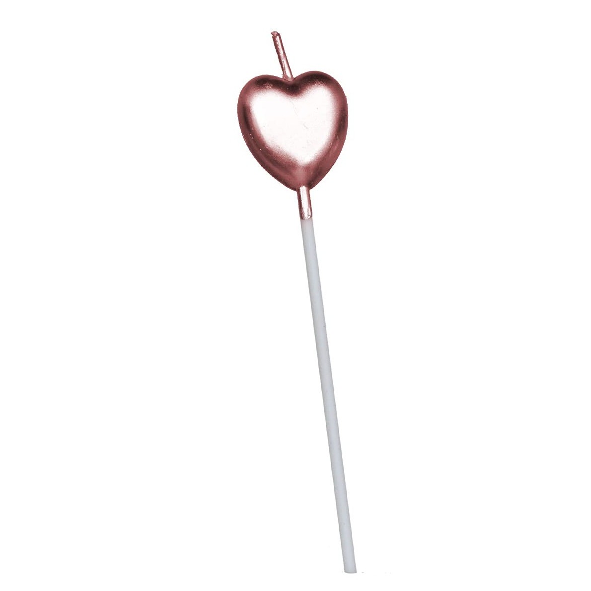 Lumanare de Tort, Flippy, Model Inima, Party, 8.5 x 3 cm, Roz Gold