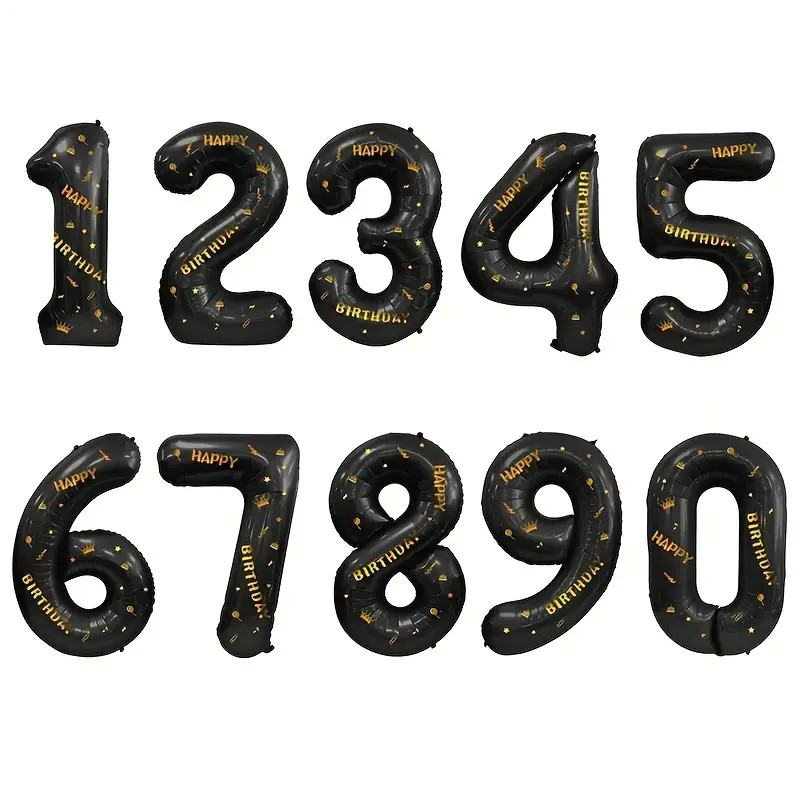 Balon din Folie Metalizata Flippy, Figurina Cifra, Scris Happy Birthday, Tema Aniversare 100 cm, Ambalaj Individual, Pai inclus, Umflare cu Aer sau Heliu, Negru, Cifra 0