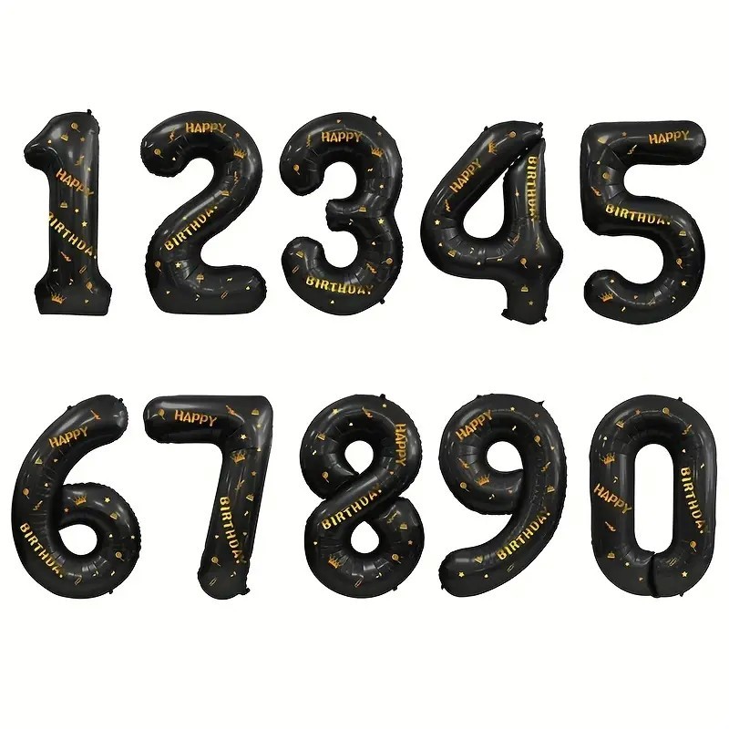 Balon din Folie Metalizata Flippy, Figurina Cifra, Scris Happy Birthday, Tema Aniversare 100 cm, Ambalaj Individual, Pai inclus, Umflare cu Aer sau Heliu, Negru, Cifra 4