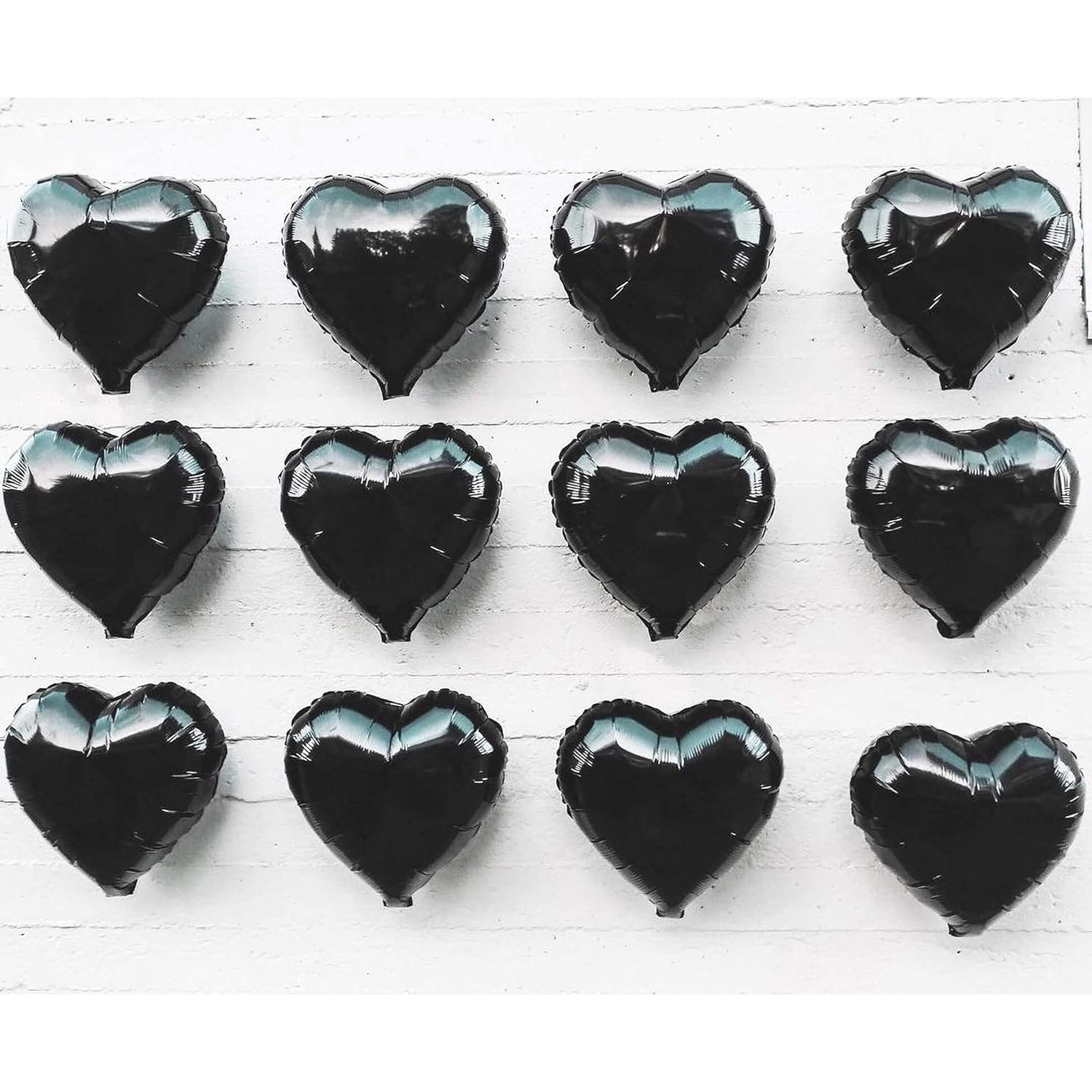 Balon din Folie Metalizata, Flippy, Figurina Inimioara, Model Simplu, Tematica Iubire, 40 cm, Ambalaj Individual, Pai Inclus, Umflare cu Aer sau Heliu, Negru