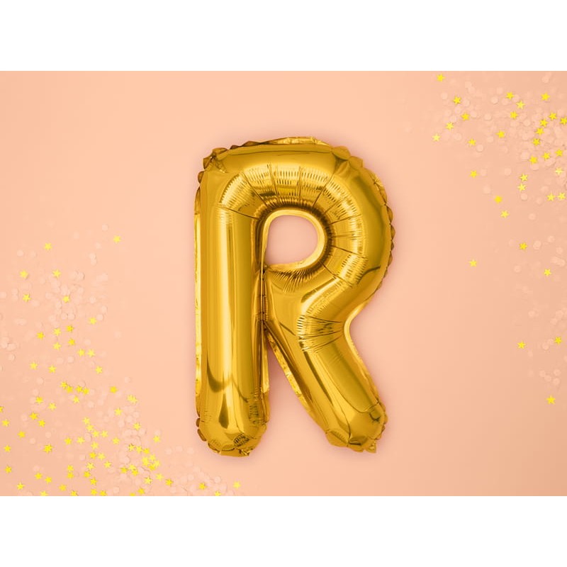 Balon Folie Metalizata Litera R, Flippy, 40 cm, Umflati cu Heliu sau Aer, Ambalaj Individual, Pai inclus, Auriu