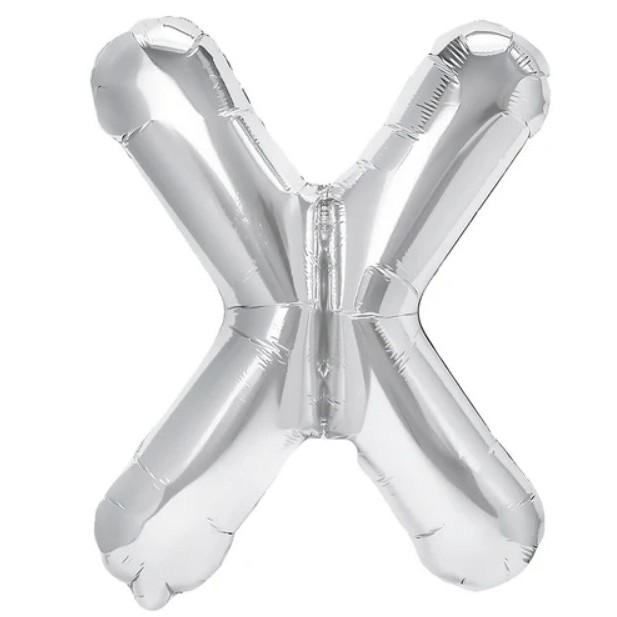 Balon Folie Metalizata Litera X, Flippy, 40 cm, Umflati cu Heliu sau Aer, Ambalaj Individual, Pai inclus, Argintiu