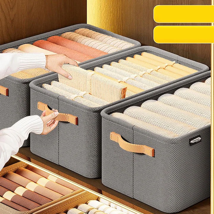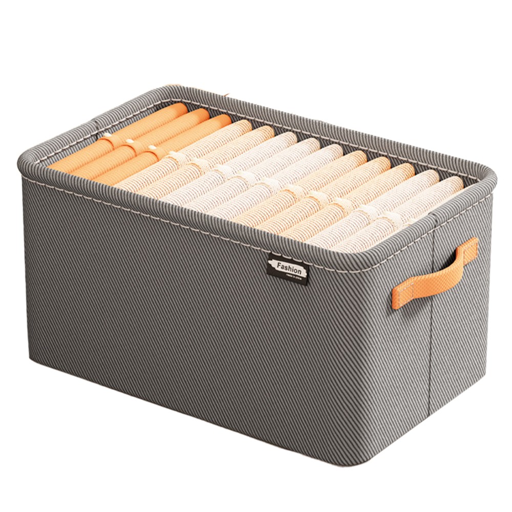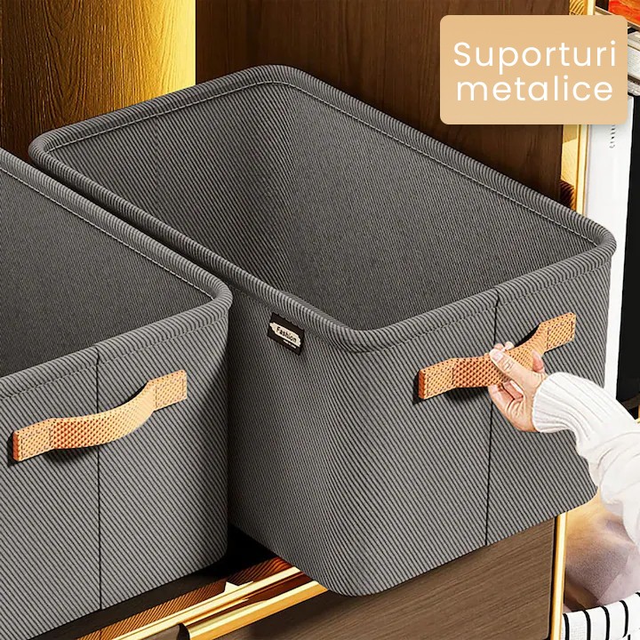 Cutie Depozitare Flippy, pentru Haine, lucruri, din Textil cu Cadru Metalic, Manere Laterale, forma Dreptunghiulara, 35 x 25 x 22cm, volum 19 L, Gri