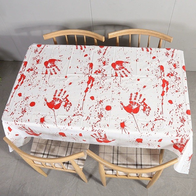 Fata de Masa, Flippy, din Folie, Imprimeu Halloween - Help Me, 137 x 274 cm, Alb/Rosu