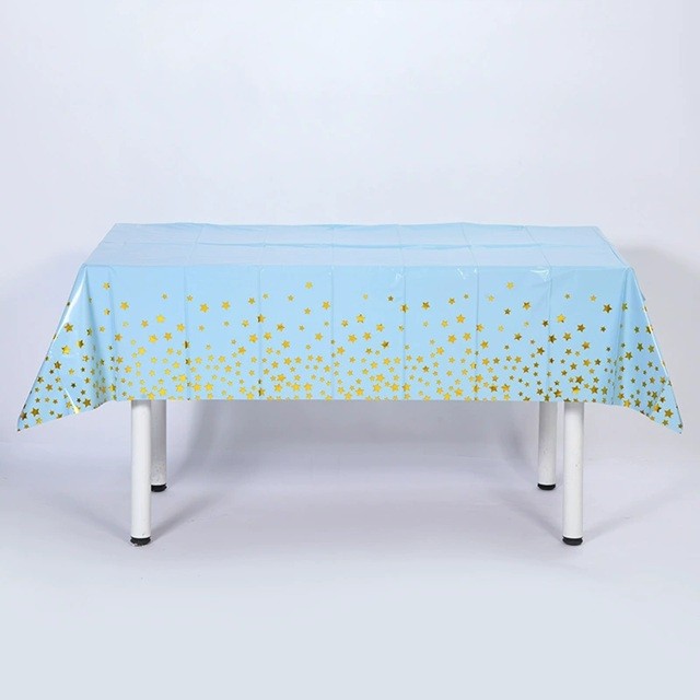 Fata de Masa, Flippy, din Folie, Imprimeu Stele Aurii, Impermeabila, 137 x 274 cm, Albastru
