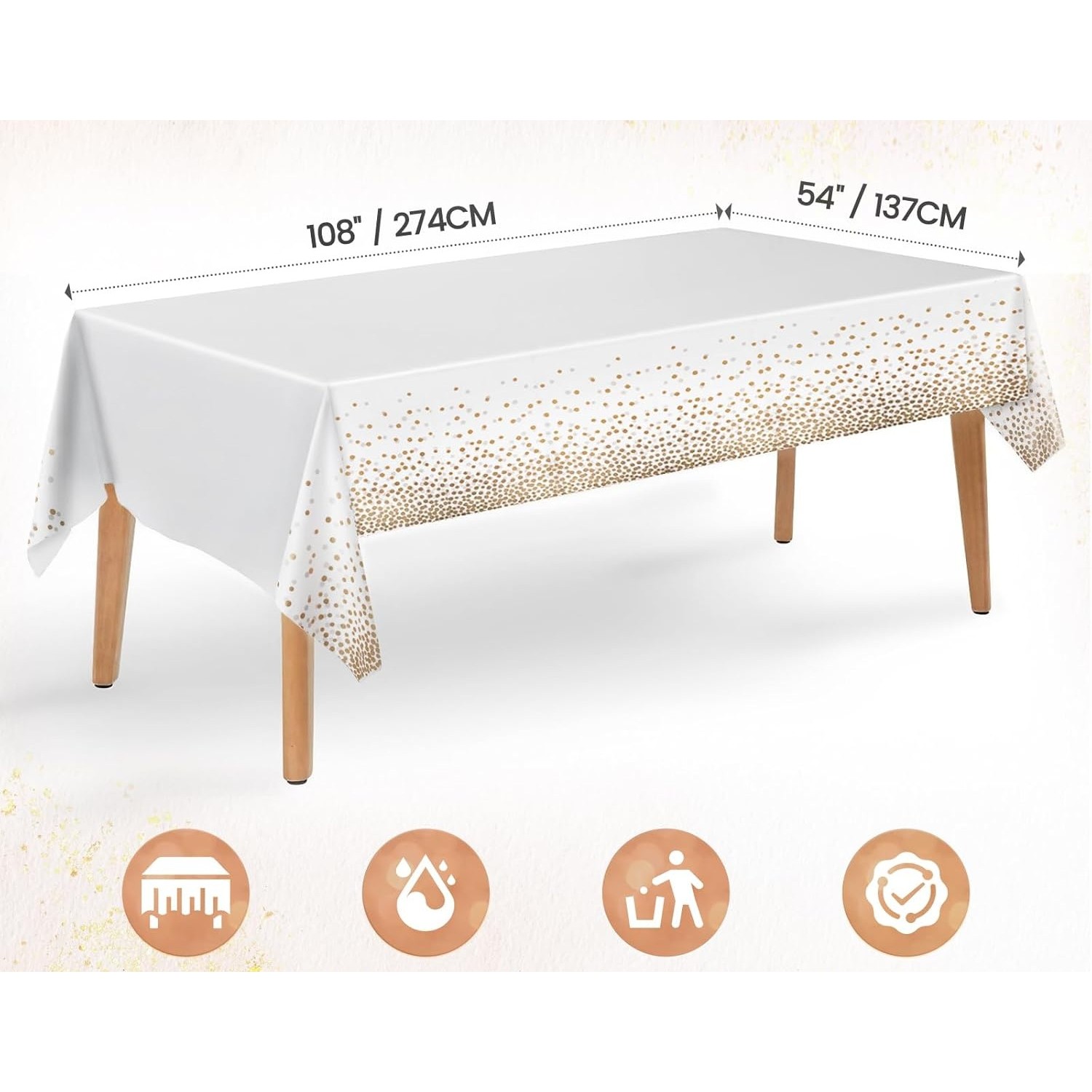 Transformă masa ta într-un decor elegant și festiv cu această față de masă Flippy din PEVA, decorată cu un imprimeu modern cu buline. Impermeabilă și anti-pete, este ideală pentru evenimente speciale precum nunți, botezuri, petreceri aniversare sau cine elegante.