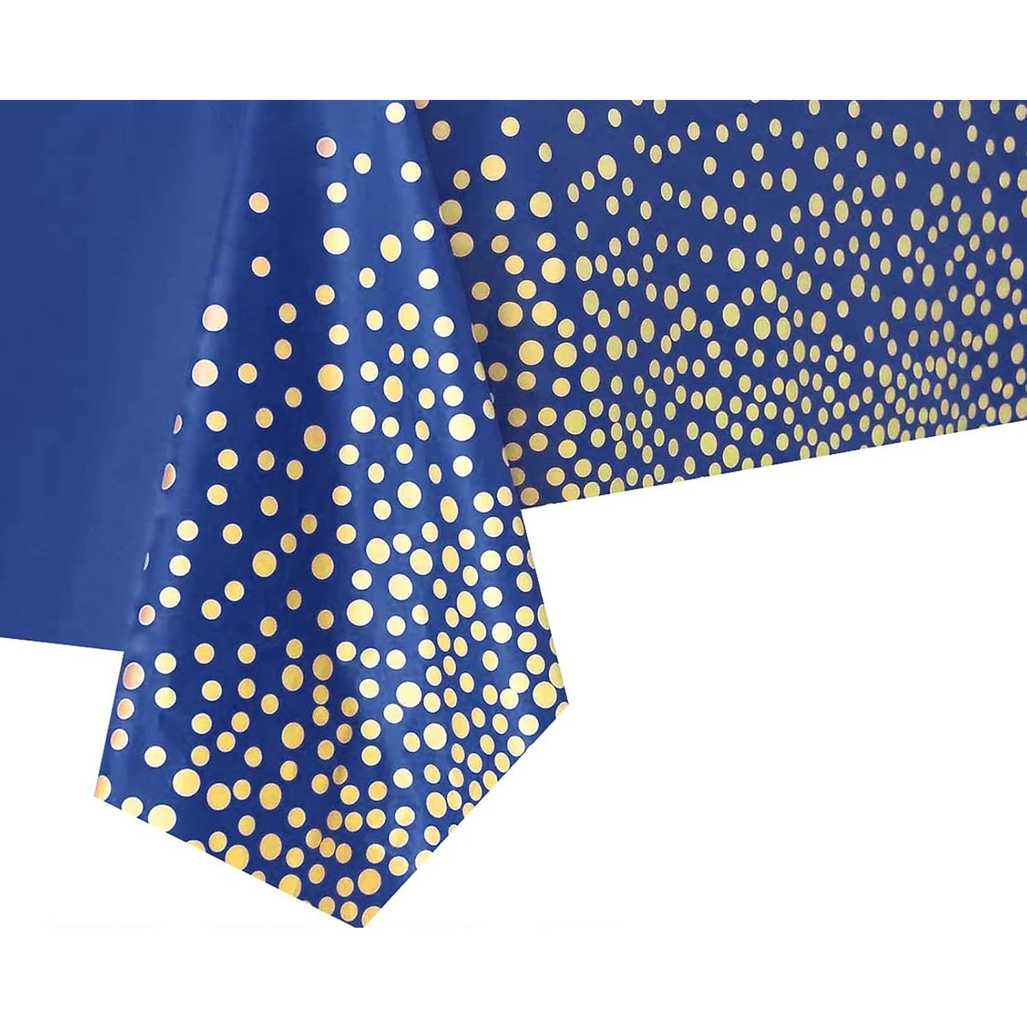 Fata de Masa, Flippy, din PEVA, Imprimeu Buline Aurii, 137 x 274 cm, Impermeabila, Fara Pete, Curatare Rapida, Albastru Inchis