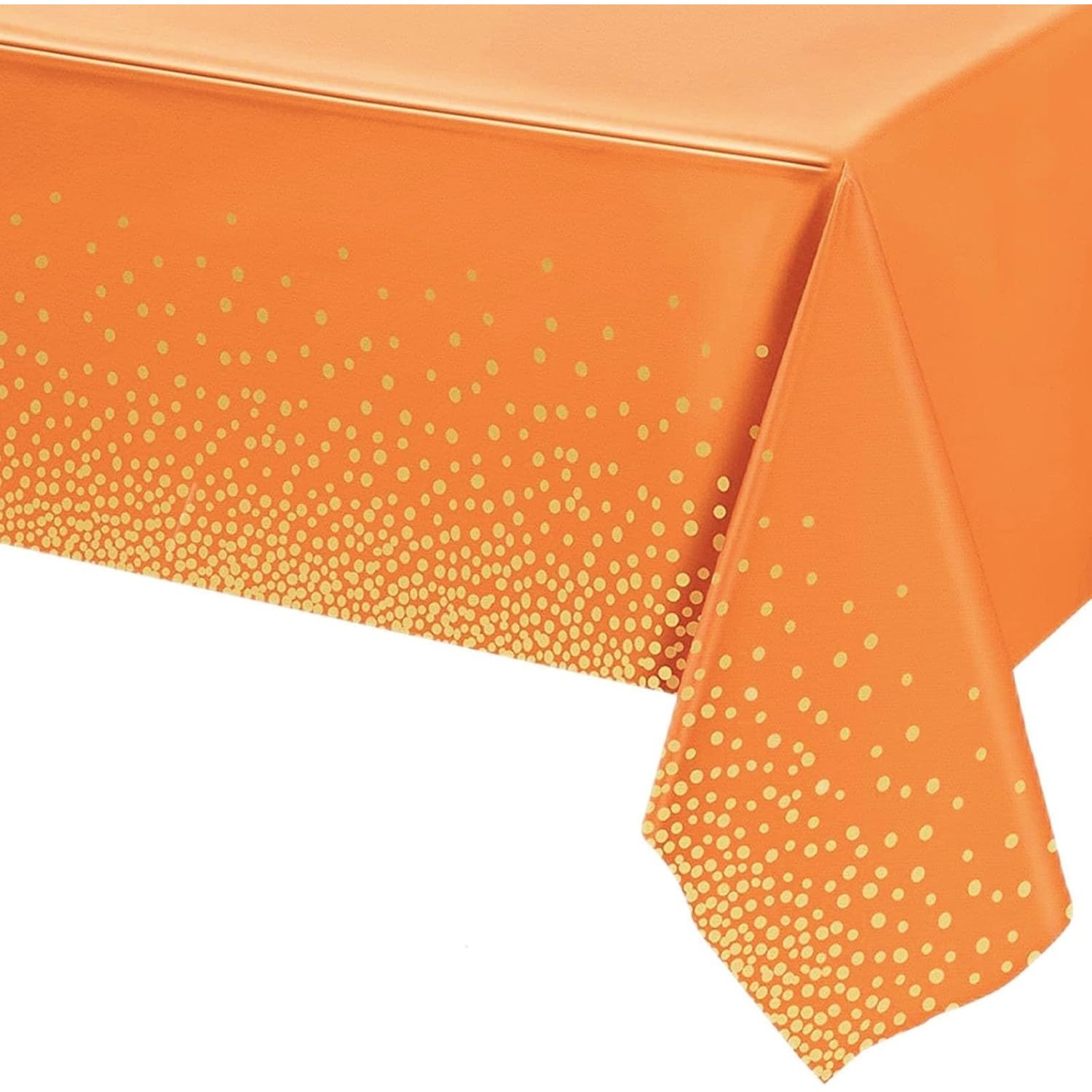 Fata de Masa, Flippy, din PEVA, Imprimeu Buline Aurii, 137 x 274 cm, Impermeabila, Fara Pete, Curatare Rapida, Portocaliu