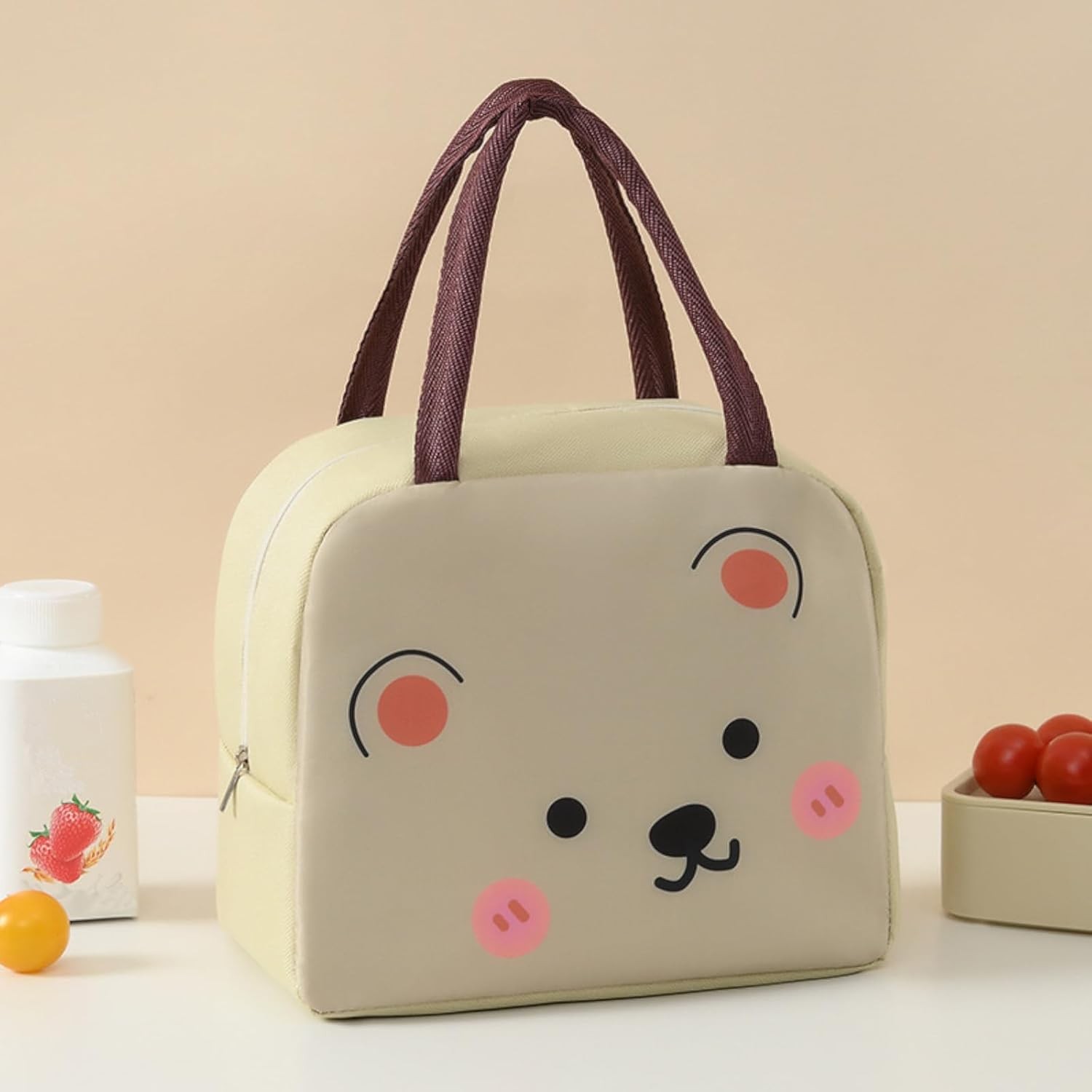Geantă Frigorifică, Flippy, cu Desene Animat, Portabilă pentru Copii, de Prânz, din Pânză Oxford, 22x14x19 cm, Model Ursulet, Bej