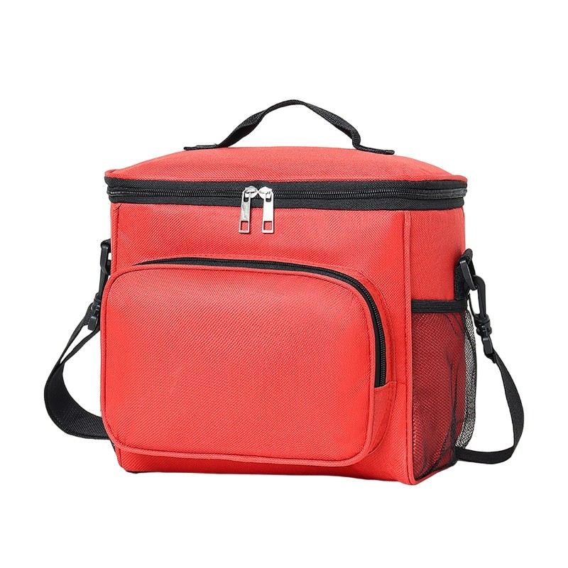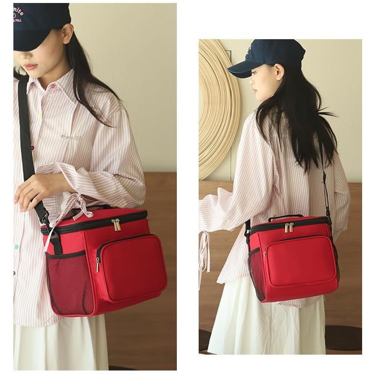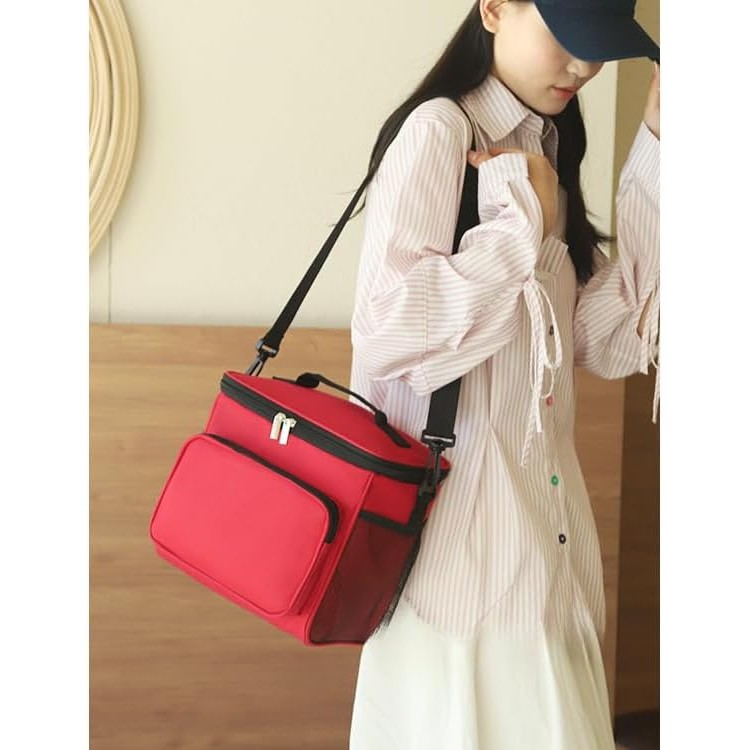 Geanta pentru Pranz, Flippy, Multifunctionala, Compartimentata, 2 Tipuri de Manere, Impermeabila, 26x24x17 cm, Rosu