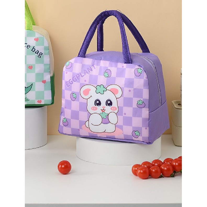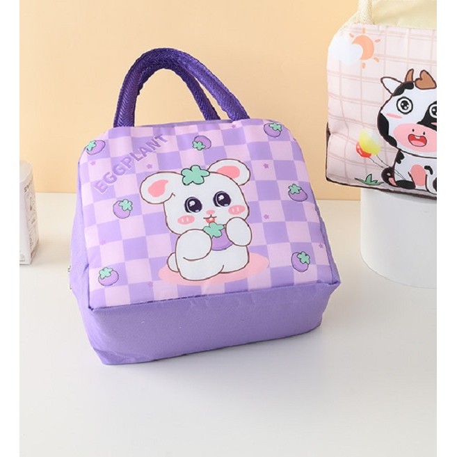 Geanta Termoizolanta pentru Copii, Flippy, 23x13x19 cm, Model Imprimeu Iepuras, din Folie de Aluminiu si Panza Oxford, Mov