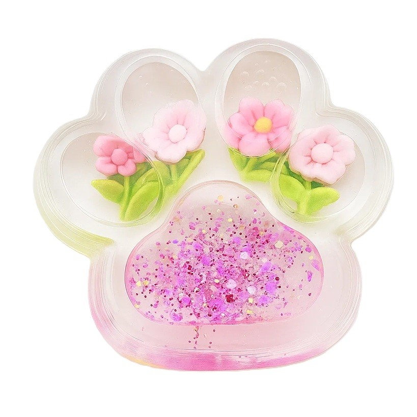 Jucarie Antistres Squishy, Flippy, Labuta de Pisica Pufoasa, cu Revenire Lenta, 7 x 6.5 cm, Model Flori, Transparent