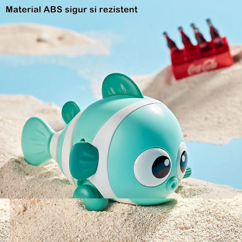Învățare prin experiență: Jucăria "Flippy" nu doar aduce distracție, ci și oportunități de învățare prin experiență. Copiii vor putea observa cum mișcările pestișorului sunt generate de acționarea cheiței. Această experiență simplă îi va familiariza cu conceptul de cauză și efect, stimulând gândirea logică și creativă. În timp ce se bucură de joc, vor dezvolta în mod natural abilități de observație și analiză, contribuind la dezvoltarea lor cognitivă.