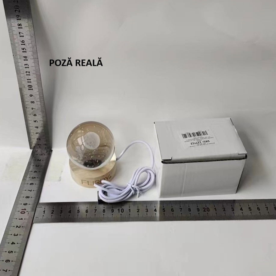 Lampă de birou cu bilă de cristal 3D, gravată cu laser