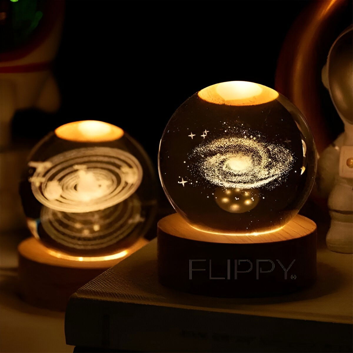 Lumina noastră de noapte este realizată din cristal K9 de înaltă calitate și tehnologie avansată de gravare cu laser 3D pentru a crea o imagine vie și clară. Când rotiți bila de cristal, luminile LED încorporate aruncă un model uimitor și strălucitor pe tavan.