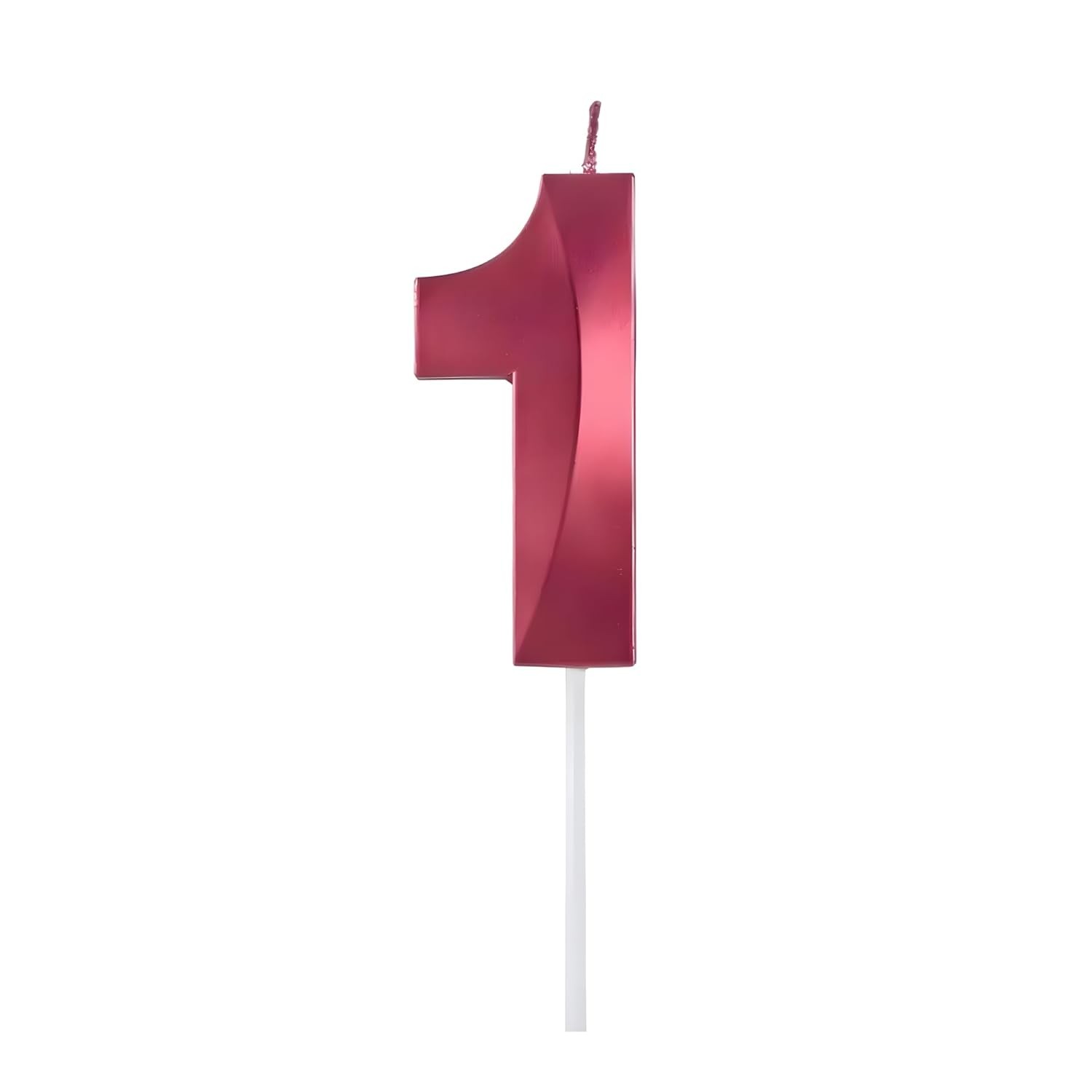 Lumânare Cifră 1, Flippy®, Model Diamond, 5 x 3.4 cm, Roz