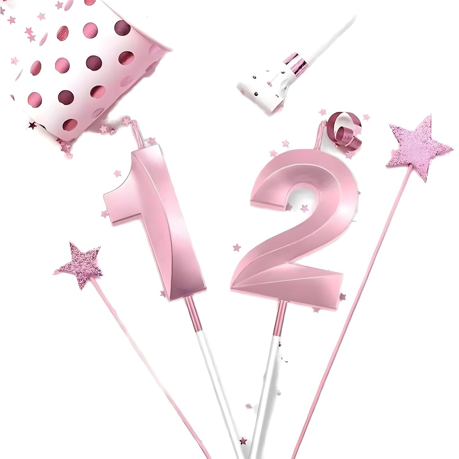 Lumânare Cifră 2, Flippy®, Model Diamond, 5 x 3.4 cm, Roz