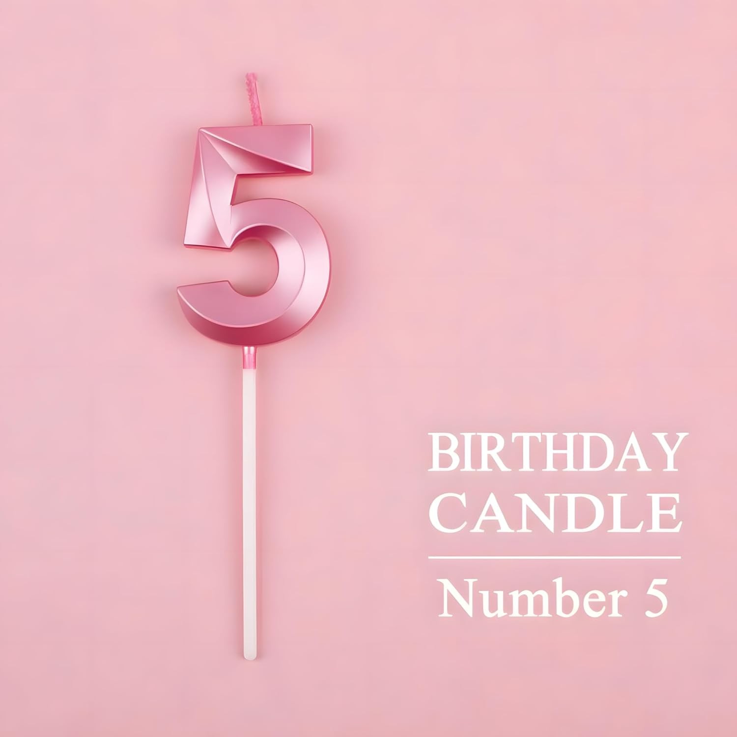 Lumânare Cifră 5, Flippy®, Model Diamond, 5 x 3.4 cm, Roz