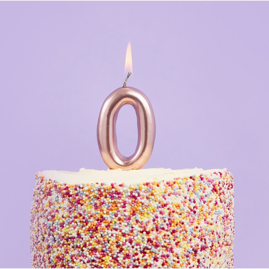 Lumanare de Tort, Flippy, Model Cifra 0, Party, 4.5 x 2.5 cm, din Parafina, Rose Gold