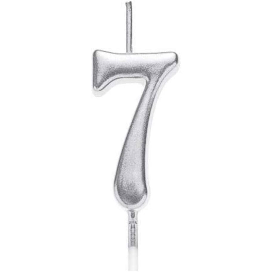 Lumanare de Tort, Flippy, Model Cifra 7, Party, 4.5 x 2.5 cm, din Parafina, Argintiu