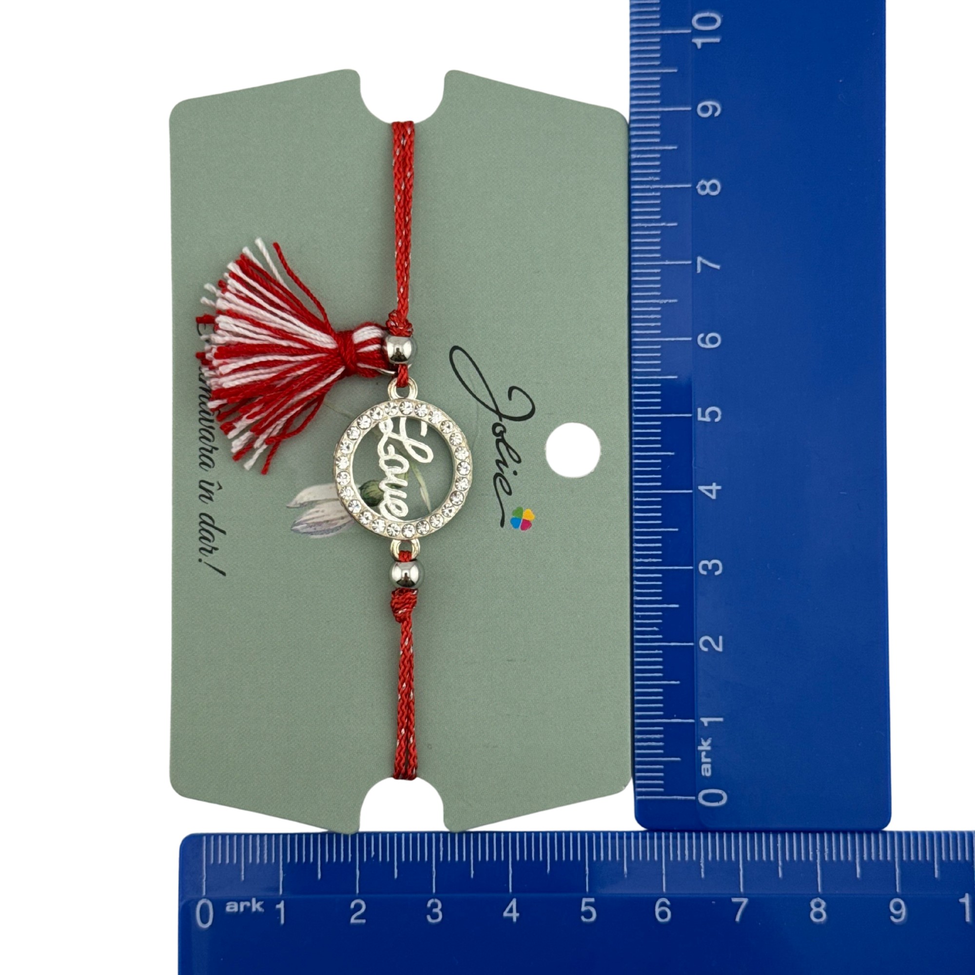 Martisor Bratara Ciucure, Jolie, Snur Rosu Reglabil, cu Pandantiv, Model Cerc Love