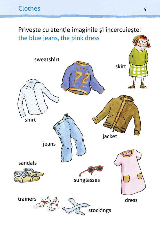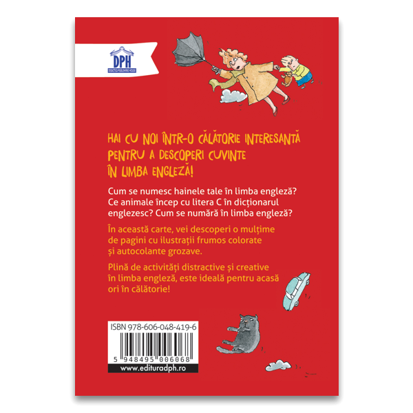 Hai cu noi intr-o calatorie interesanta pentru a descoperi cuvinte in limba engleza! Cum se numesc hainele tale in limba engleza? Ce animale incep cu litera C in dictionarul englez? Cum se numara in limba engleza? In aceasta carte, vei descoperi o multime de pagini cu ilustratii frumos colorate si autocolante grozave.