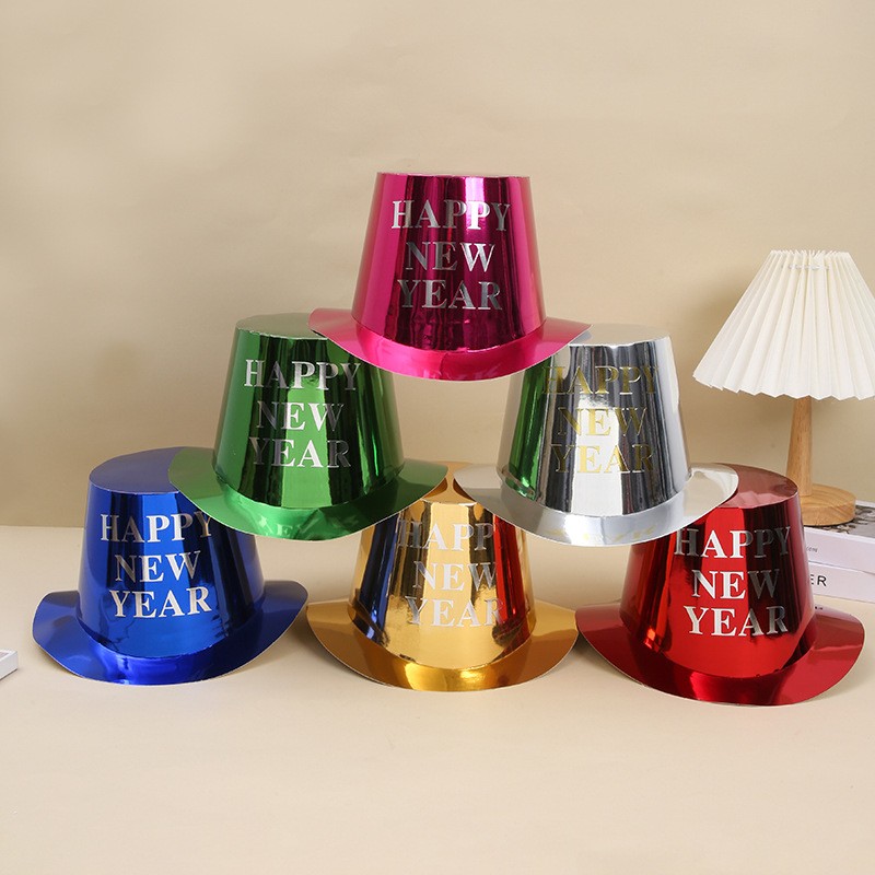 Cu inscriptia "HAPPY NEW YEAR" pe partea frontala si designul stralucitor, palaria devine un accesoriu ideal pentru poze memorabile si pentru a marca trecerea dintre ani intr-un stil festiv.