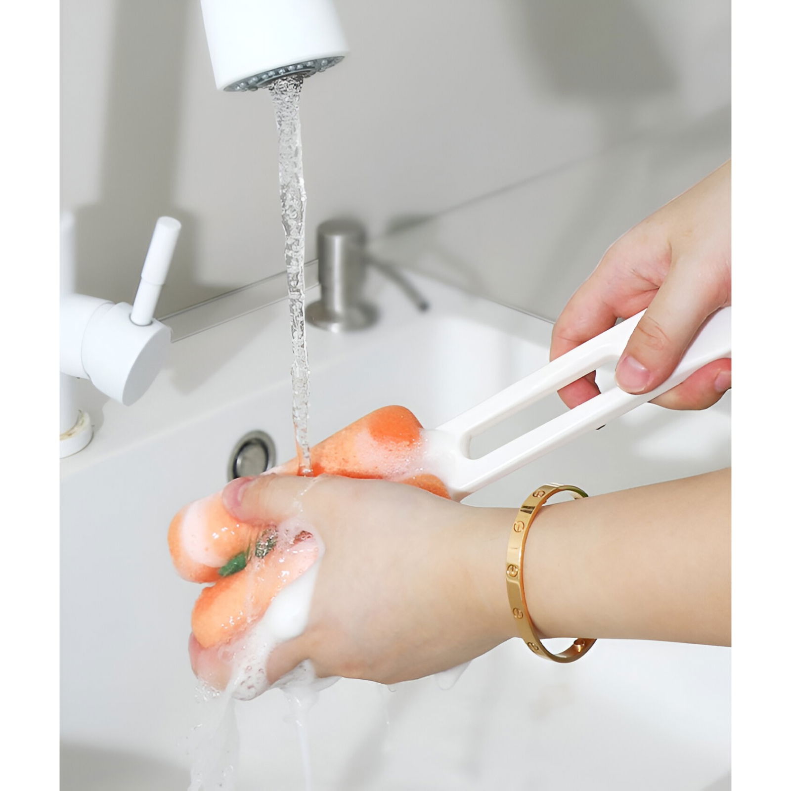 Peria pentru pahare adoptă un design special, echipată cu un burete moale ce nu va zgâria și un mâner lung durabil, care poate curăța cu ușurință întreaga suprafață interioară a paharelor sau sticlelor.